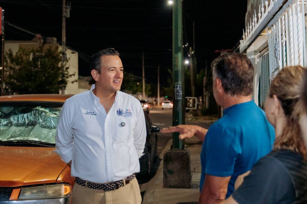 El alcalde Marco Bonilla, recorrió calles de la colonia Los Olivos, para supervisar el funcionamiento del reciente cambio de luminarias a luz LED, la seguridad de la zona y las calles.