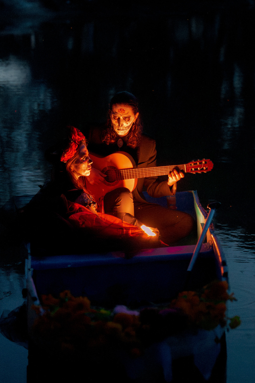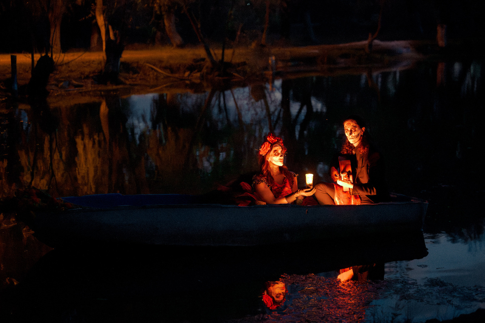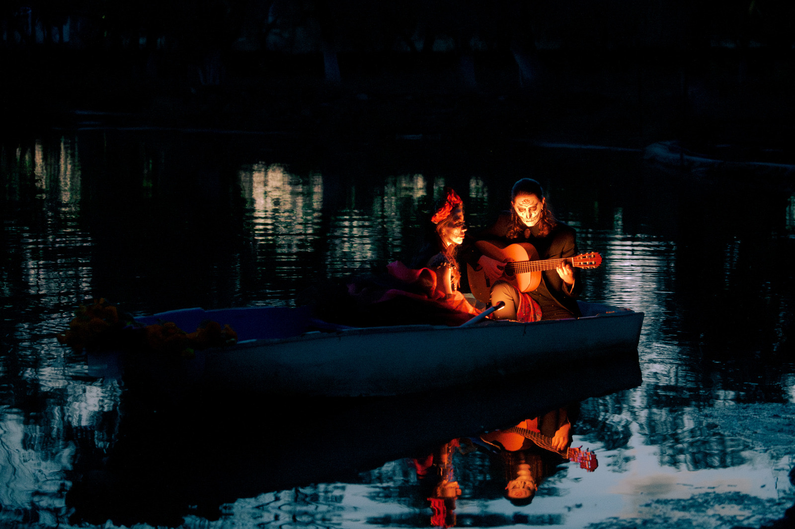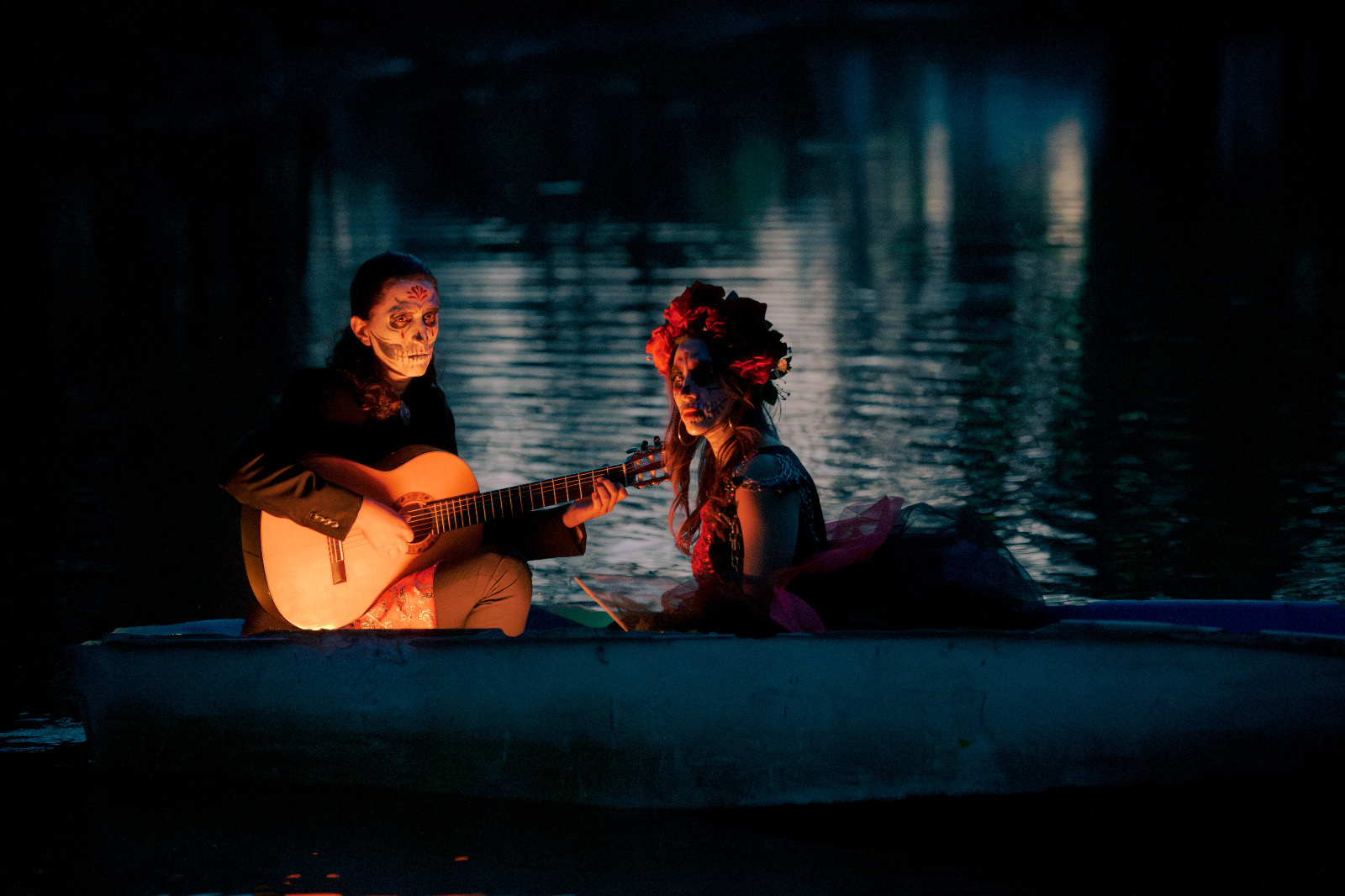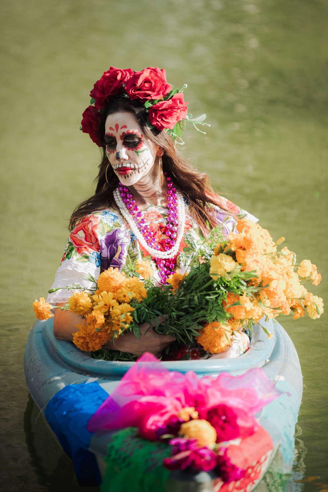 Durante la sesión, los participantes interpretaron la emblemática canción de «La Llorona» sobre una balsa, en medio de la laguna, lo que creó una escena cargada de simbolismo, que reforzó el mensaje de homenaje a la memoria y al arte.
