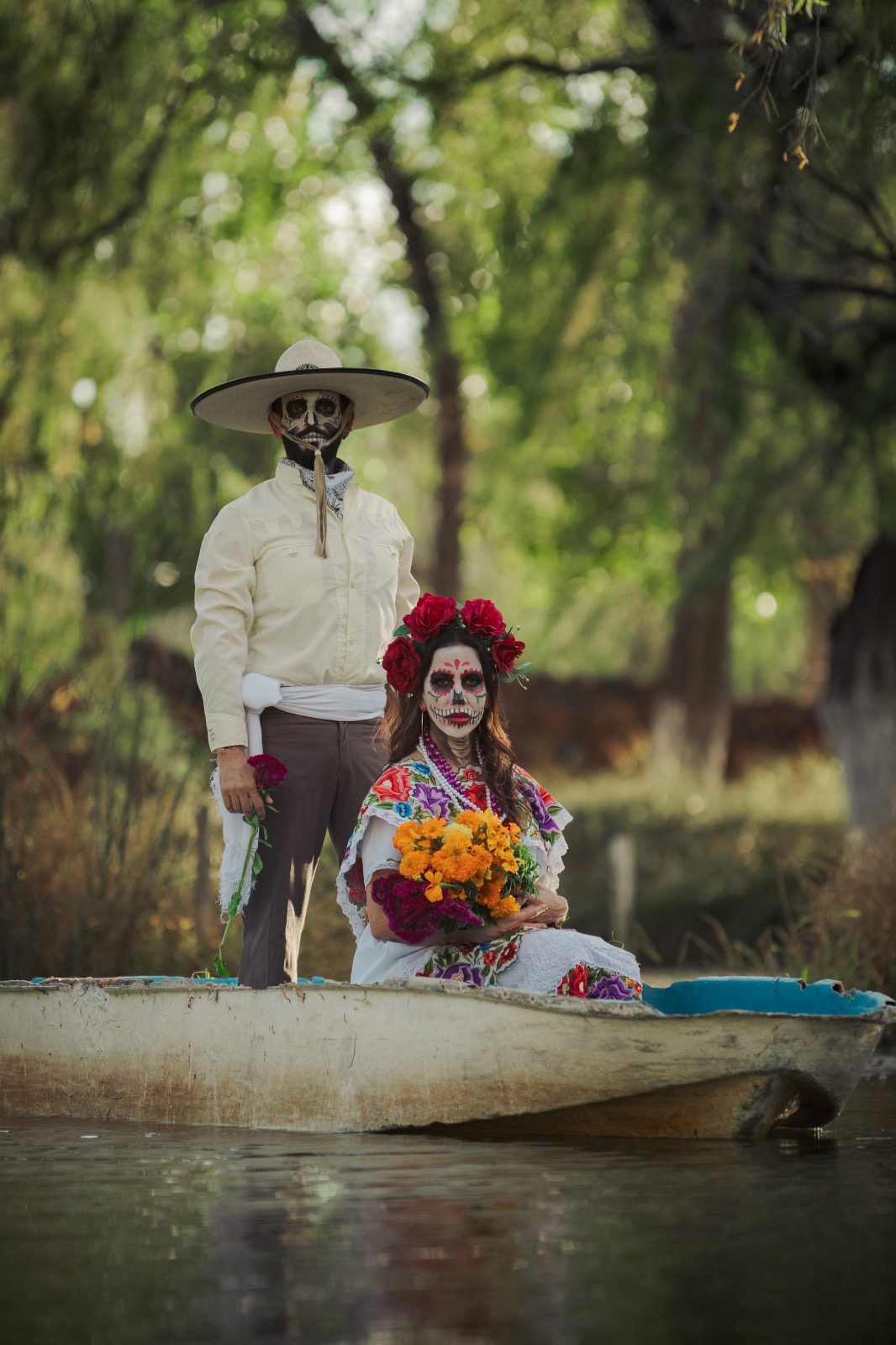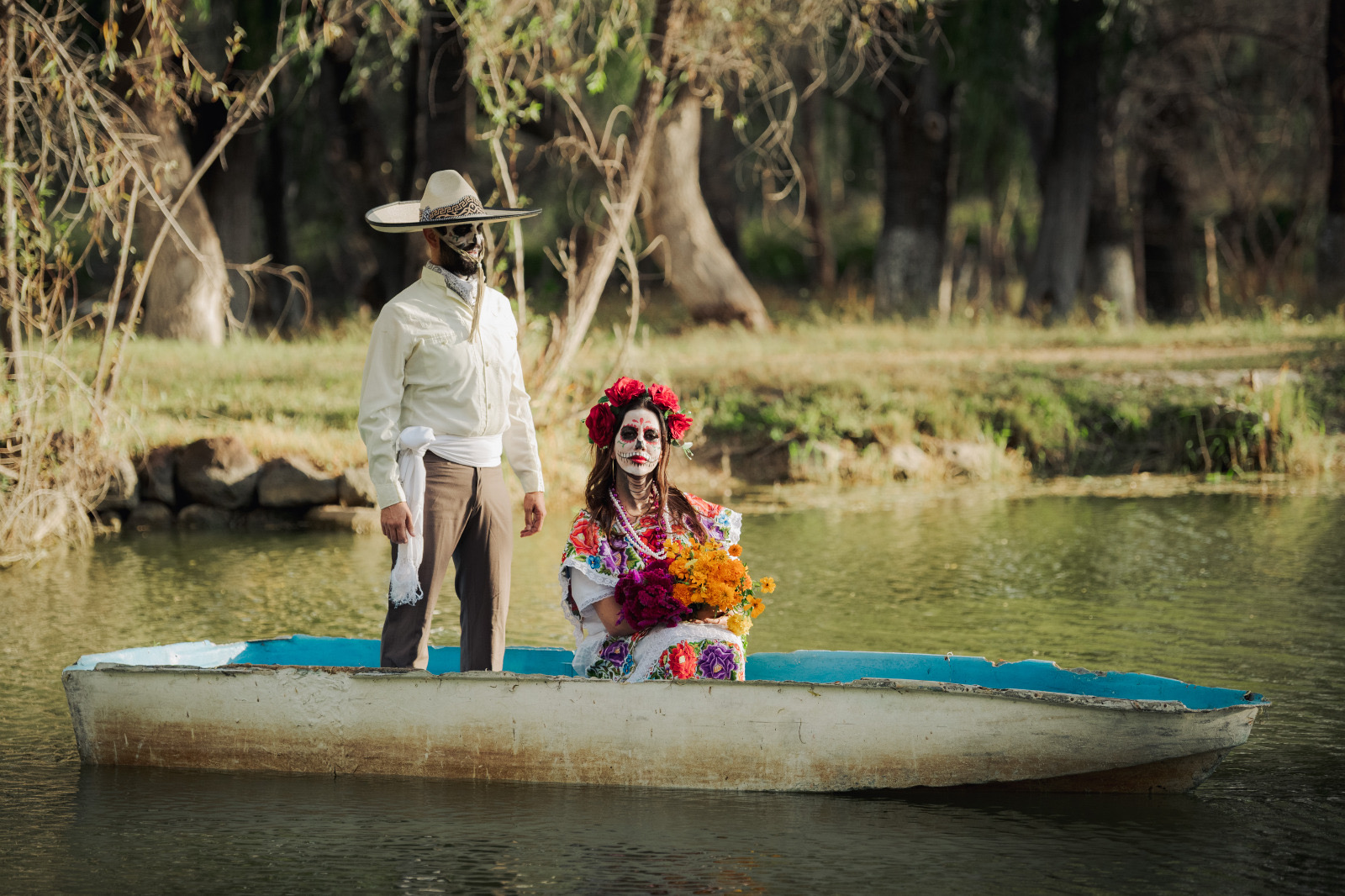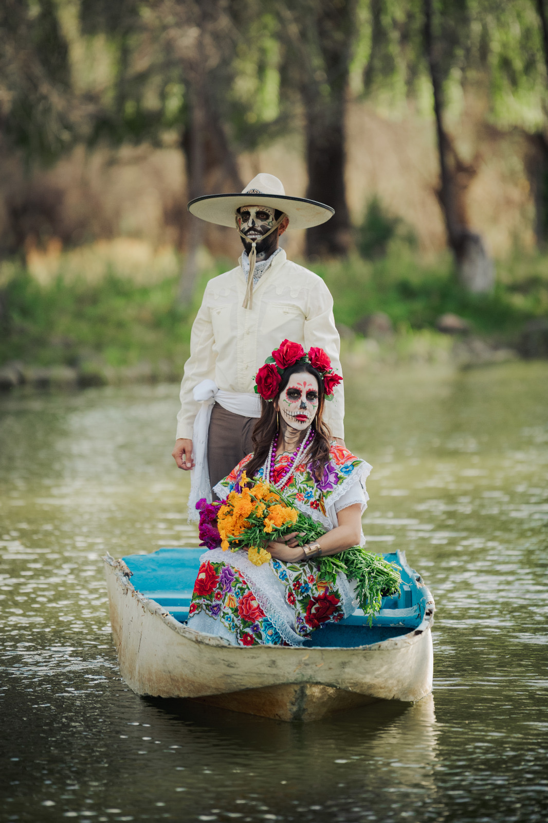 La sesión tuvo lugar en la Laguna de Ojos Verdes, en el municipio de Carichí, donde el entorno natural fungió como escenario para enaltecer la tradición del Día de Muertos, entre flores de cempasúchil, velas y catrines que evocan la conexión entre la vida, el arte y el recuerdo.