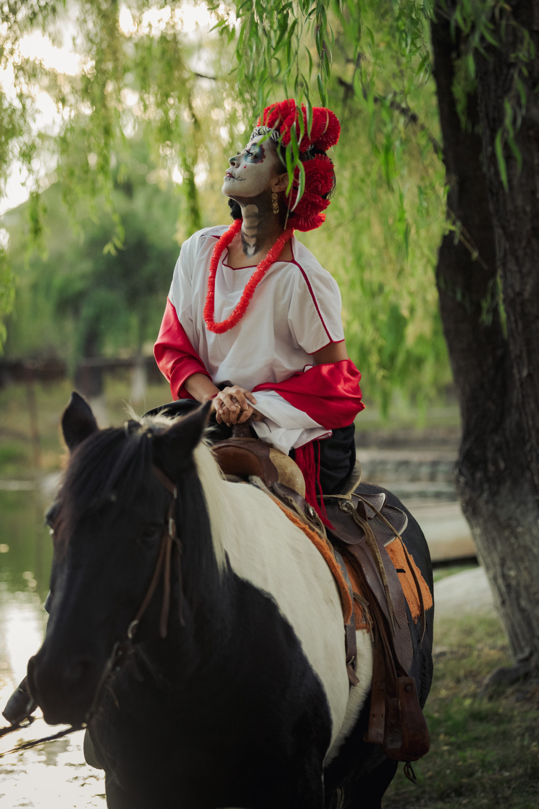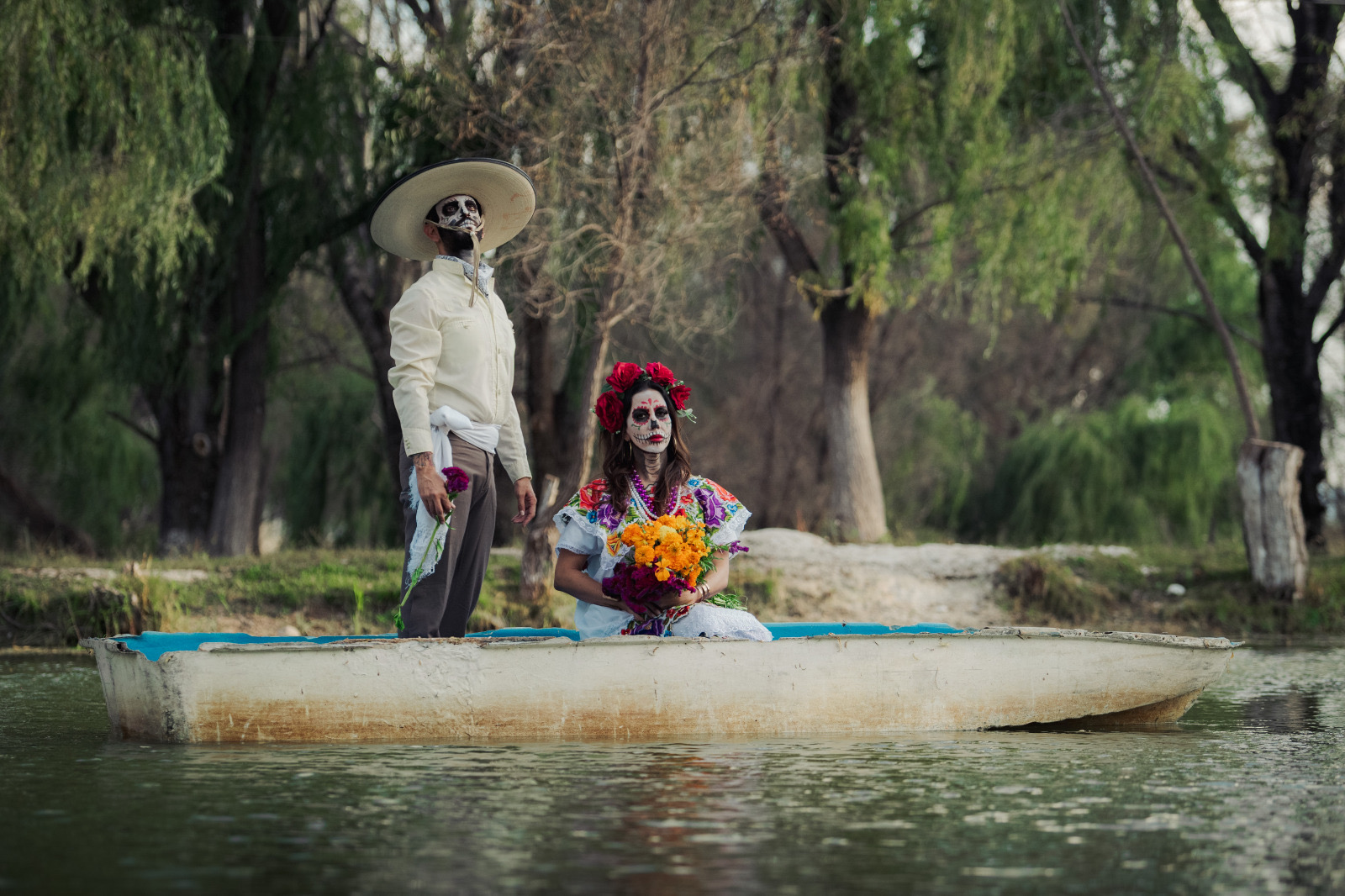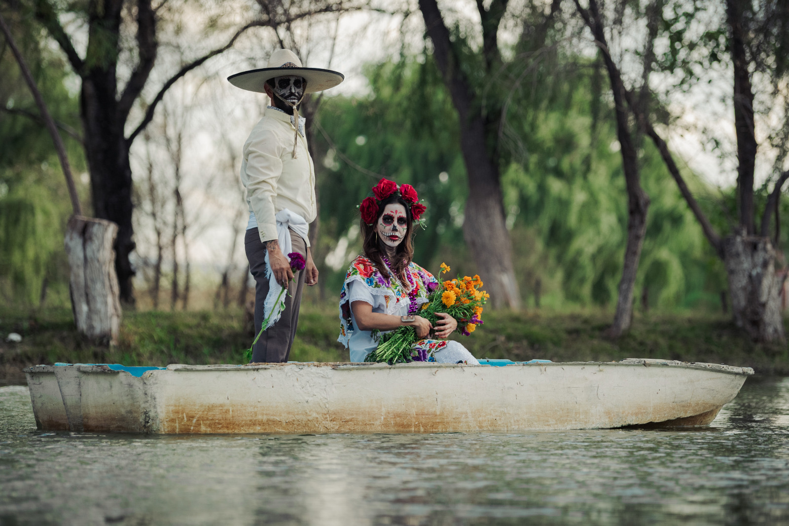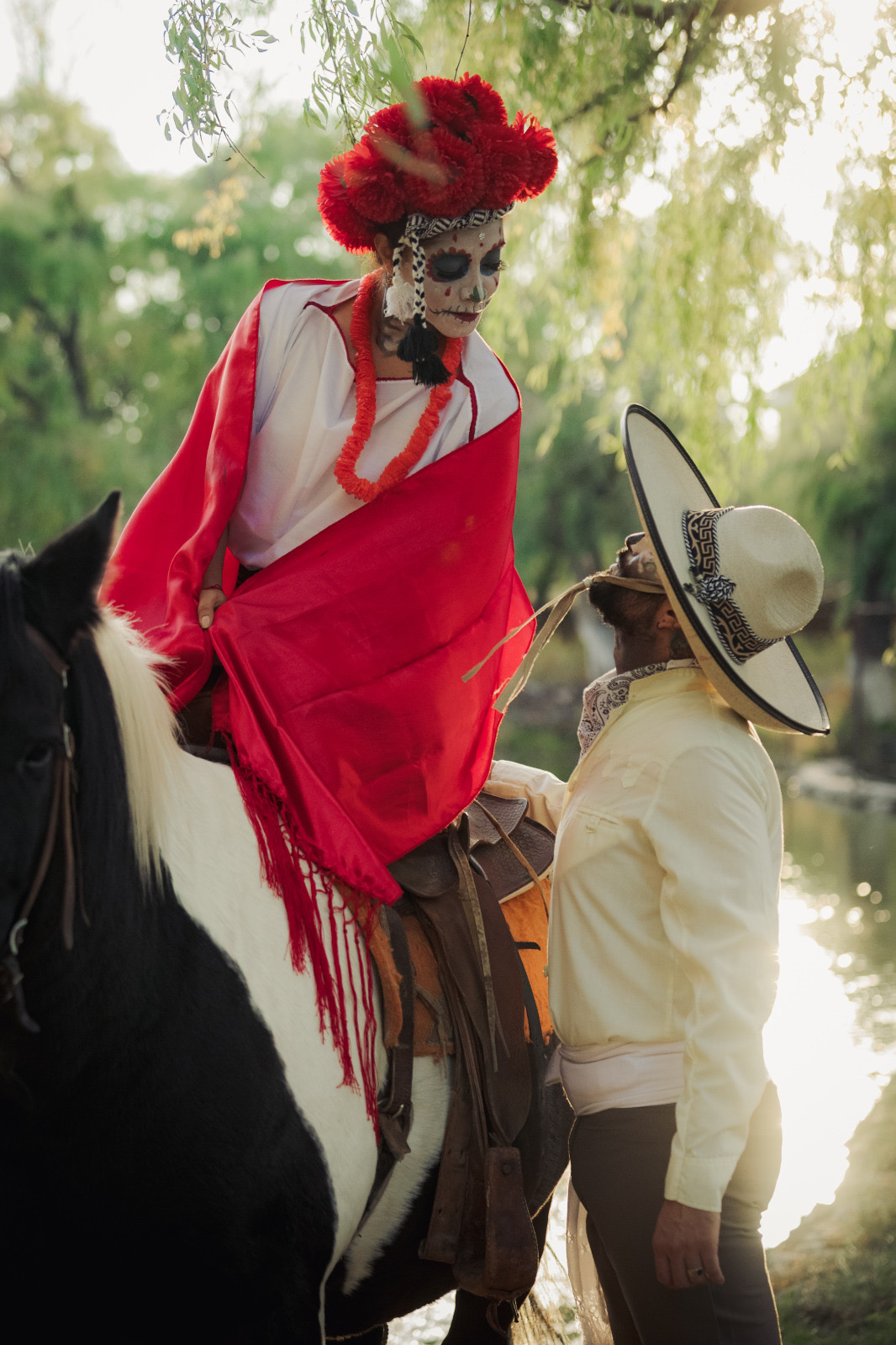 La sesión tuvo lugar en la Laguna de Ojos Verdes, en el municipio de Carichí, donde el entorno natural fungió como escenario para enaltecer la tradición del Día de Muertos, entre flores de cempasúchil, velas y catrines que evocan la conexión entre la vida, el arte y el recuerdo.