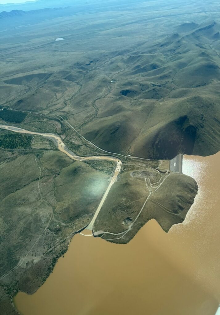El secretario de Desarrollo Rural, Mauro Parada Muñoz acompañando de personal técnico especializado, realizó un recorrido aéreo para supervisar los niveles de almacenamiento en las principales presas del estado.
