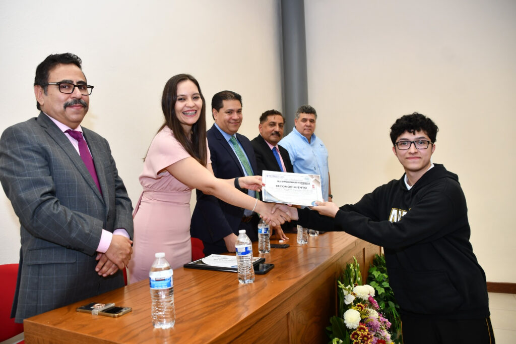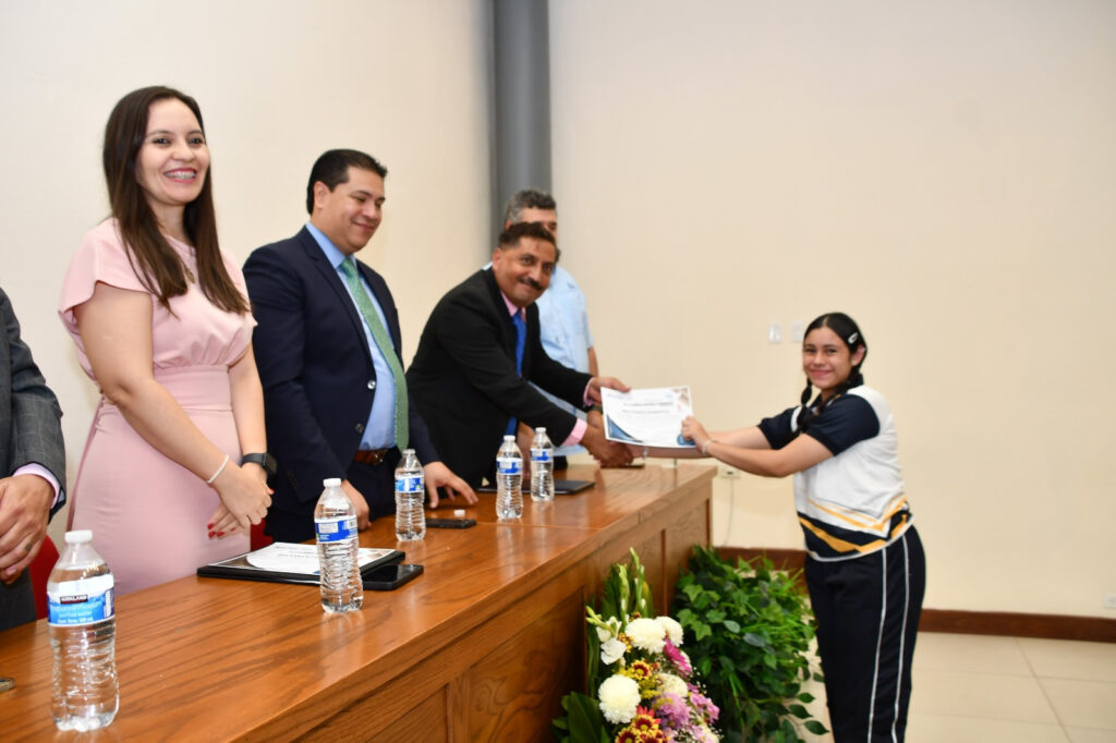 Durante el evento se entregaron reconocimientos a los asesores Jorge Fernández Quezada y Mario Héctor Valenzuela Trujillo, así como a la entrenadora Rocío Zea Rico y al personal de la Facultad de Contaduría y Administración de la UACH.