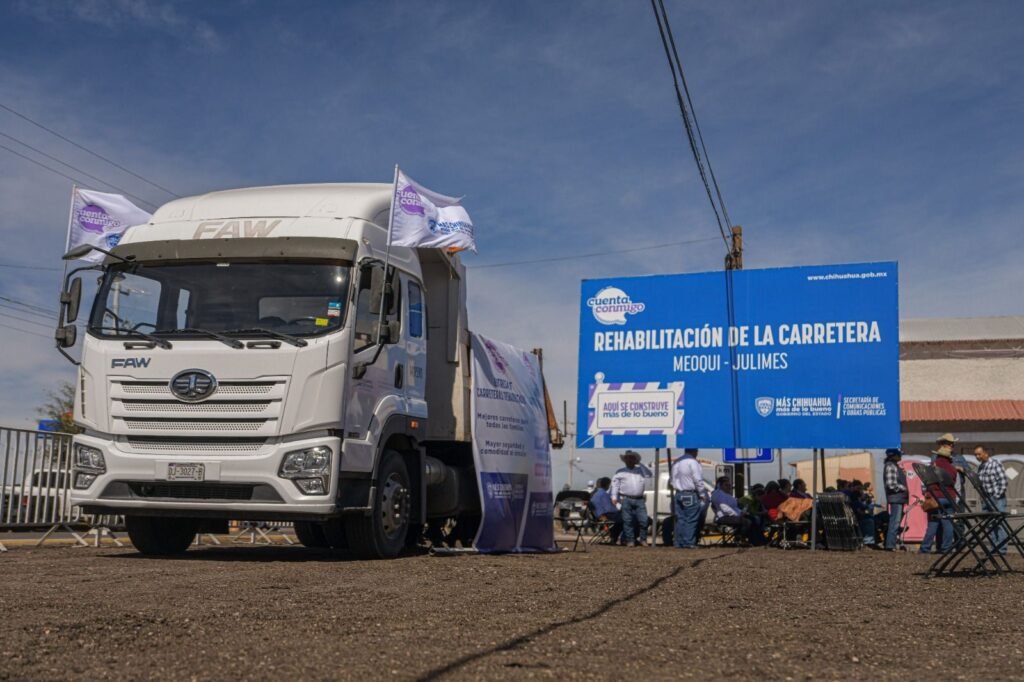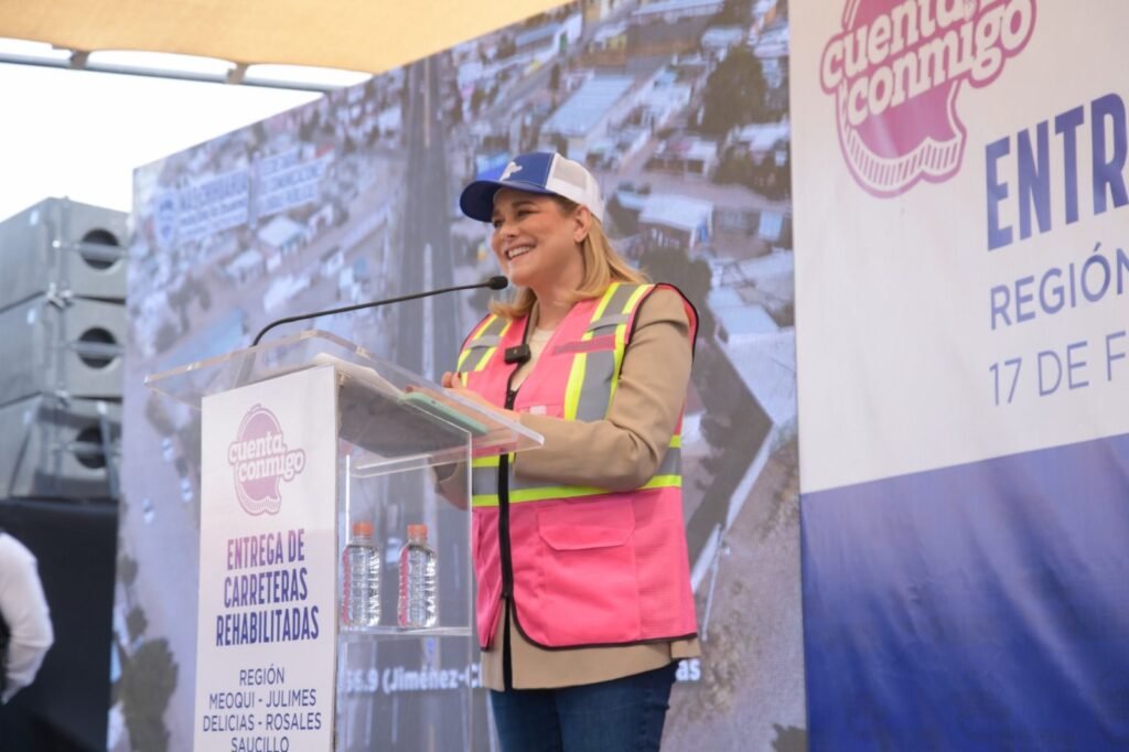 La gobernadora Maru Campos entregó la obra de rehabilitación de la carretera Meoqui-Julimes que beneficiará a más de 50 mil personas, y que, en conjunto con la reconstrucción de la vía a Rosales y el acceso al seccional de Lázaro Cárdenas, representa una inversión superior a los 100 millones de pesos (mdp).