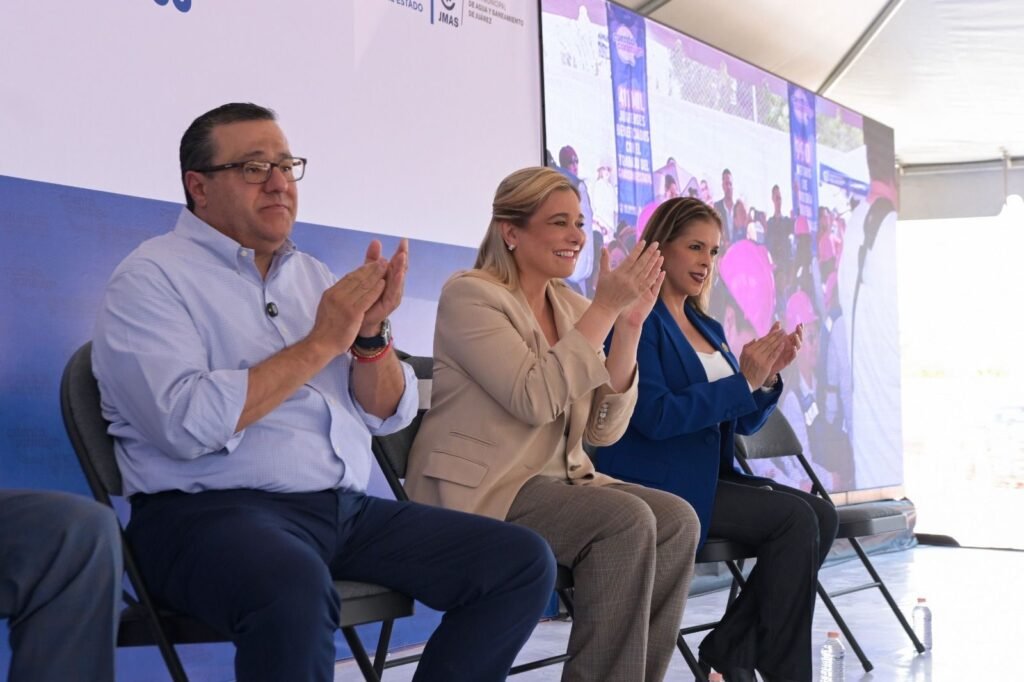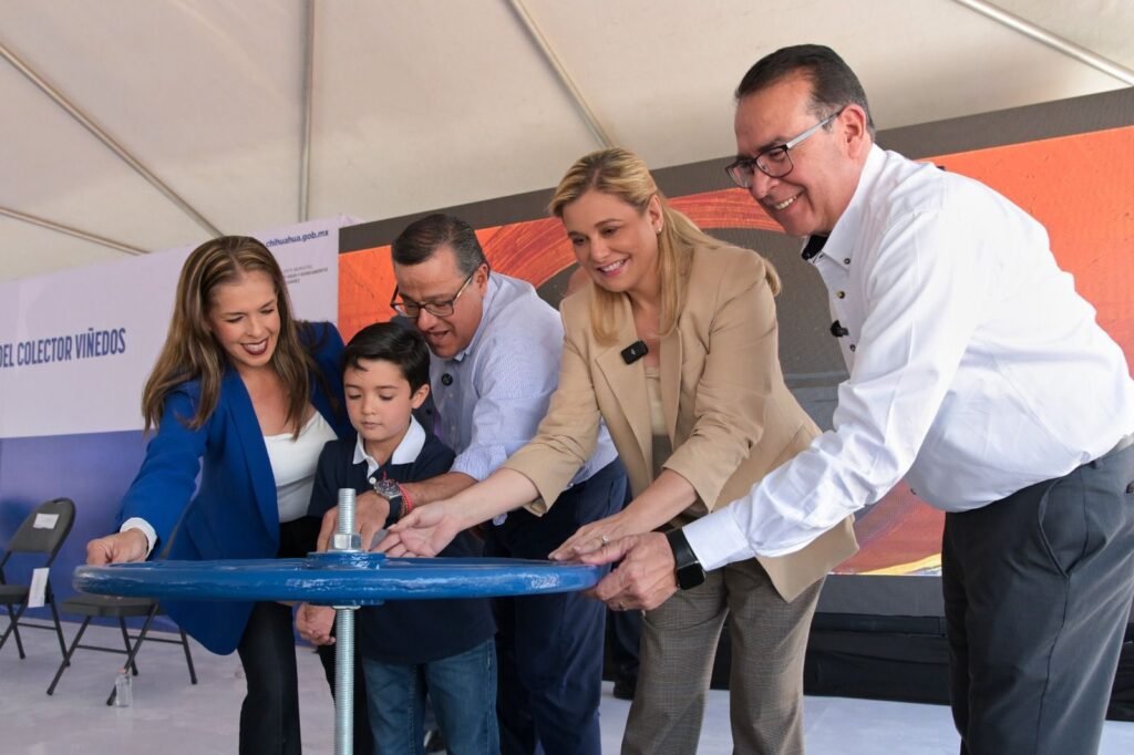 La gobernadora Maru Campos encabezó en Ciudad Juárez la inauguración del Colector Viñedos en beneficio de más de 441 mil habitantes, en seguimiento a la estrategia de su administración de mejorar la infraestructura sanitaria y las redes de alcantarillado en zonas urbanas.