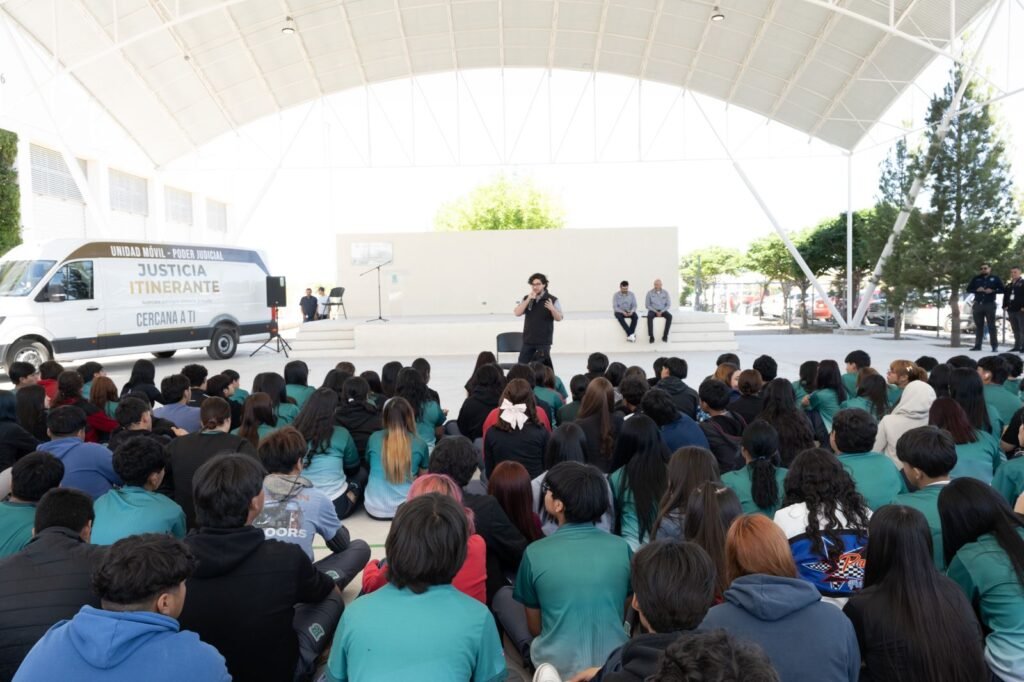 Con el objetivo de derribar las barreras entre las instituciones y la juventud, el Poder Judicial del Estado de Chihuahua dio inicio formal a los programas “Soy Legal” y “Justicia Itinerante” en esta ciudad fronteriza. La sede de este arranque fue el Plantel 16 del Colegio de Bachilleres (COBACH), donde más de 2,000 alumnas y alumnos del turno vespertino y matutino participaron en una jornada de formación, reflexión , recreación y servicios jurídicos.