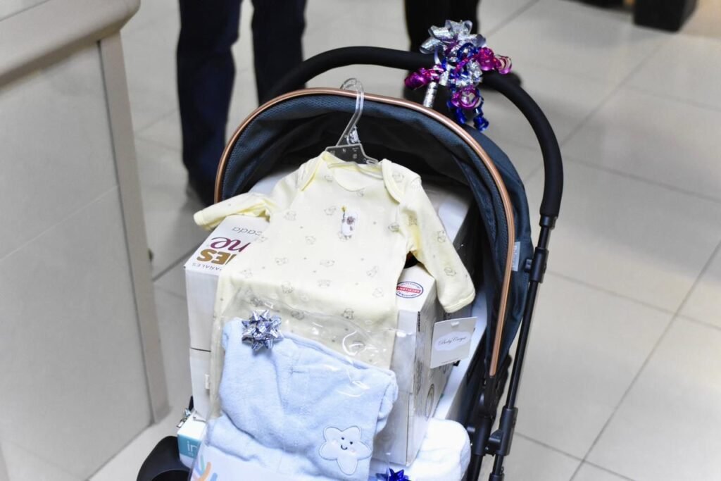 El director ejecutivo de la Junta Municipal de Agua y Saneamiento (JMAS), Marco Licón, entregó a la madre de la bebé un paquete de apoyo que incluyó una bañera, pañales, toallas húmedas, una carriola y otros insumos de cuidado personal.