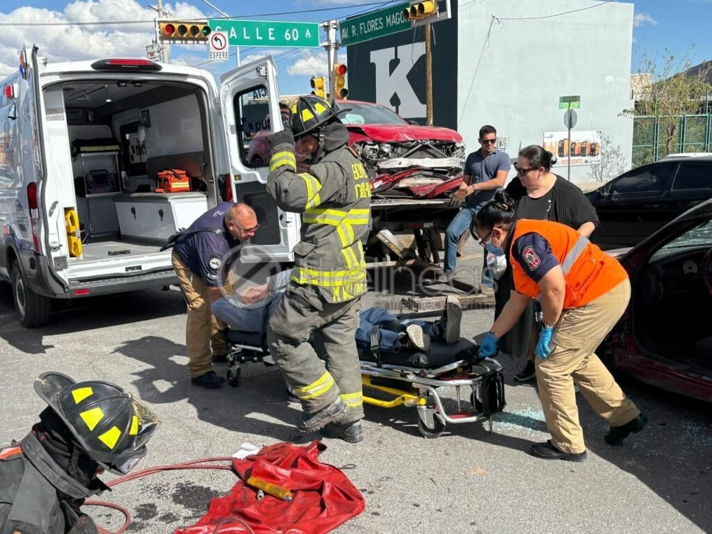 Un aparatoso choque en la avenida Flores Magón y calle 60 dejó como resultado dos adultos mayores y una mujer lesionados.