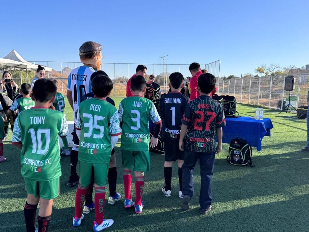 La Secretaría de Seguridad Pública del Estado (SSPE) entregó 24 uniformes y mochilas deportivas al equipo de futbol infantil Scorpions FC, de Chihuahua capital, cuyos integrantes viajarán este sábado 13 de diciembre a Colombia para representar a México en la Copa Cup Colombia 2025.