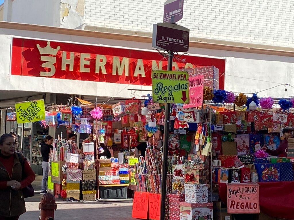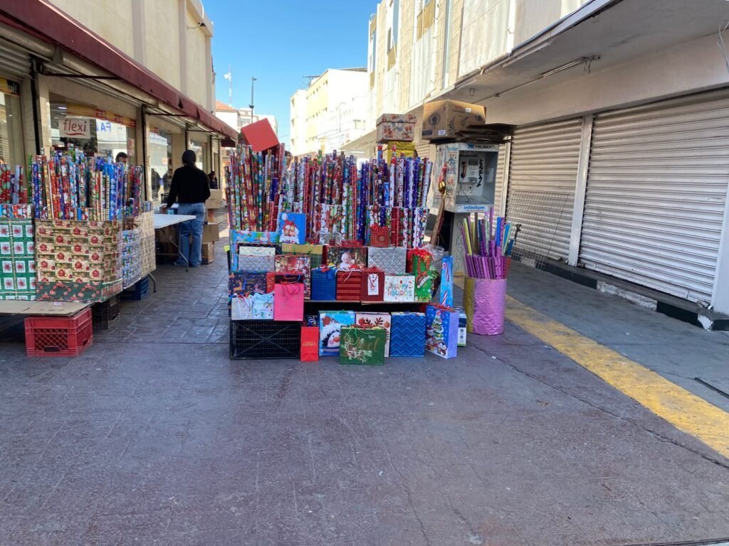 Ante la época y las compras de pánico por navidad, el papel de regalo es lo más demandante por lo cual el comercio en el centro tiene varios puntos de venta, destacando la calle Libertad.