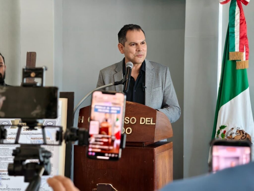 El Secretario de Seguridad Pública del Estado, Gilberto Loya, participó en una rueda de prensa convocada por integrantes del H. Congreso del Estado, con el objetivo de dar a conocer la convocatoria para reconocer la excelencia, valentía y dedicación de las y los elementos policiales.