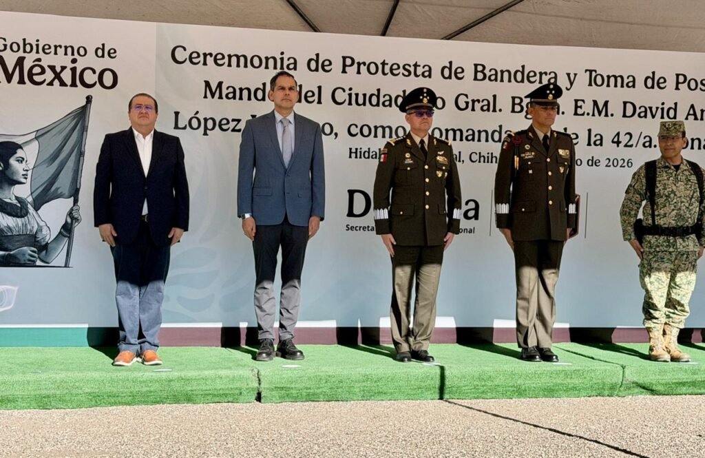 El secretario de Seguridad Pública del Estado, Gilberto Loya Chávez, acudió durante la mañana de este 6 de enero a la toma de posesión del cargo y protesta de bandera del nuevo Comandante de la 42 Zona Militar, el General de Brigada de Estado Mayor, David Antonio López Velazco, quien asume la responsabilidad de continuar con las labores de seguridad en la región.