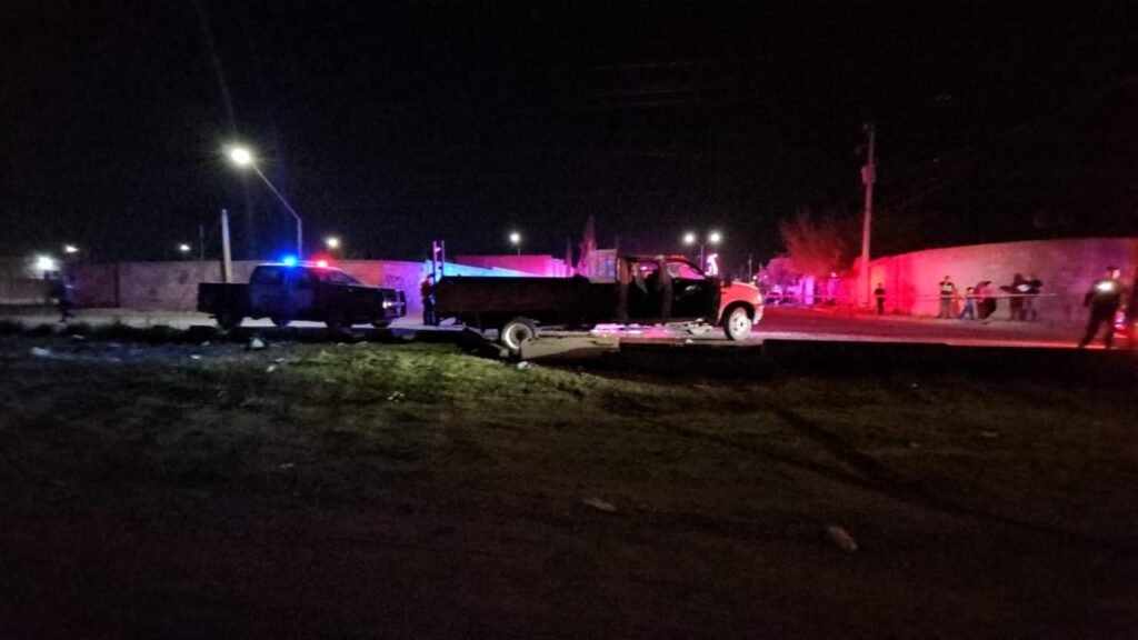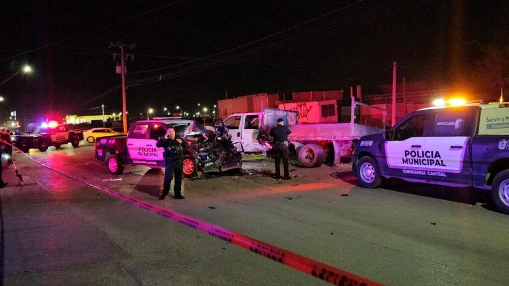 Chihuahua, Chih.— Un elemento de la Policía Municipal resultó lesionado luego de un accidente vial registrado en el cruce de las calles Río Amazonas y Río Nilo, luego de que un camión de plataforma presuntamente omitiera el alto correspondiente y provocara un fuerte choque contra una patrulla oficial.