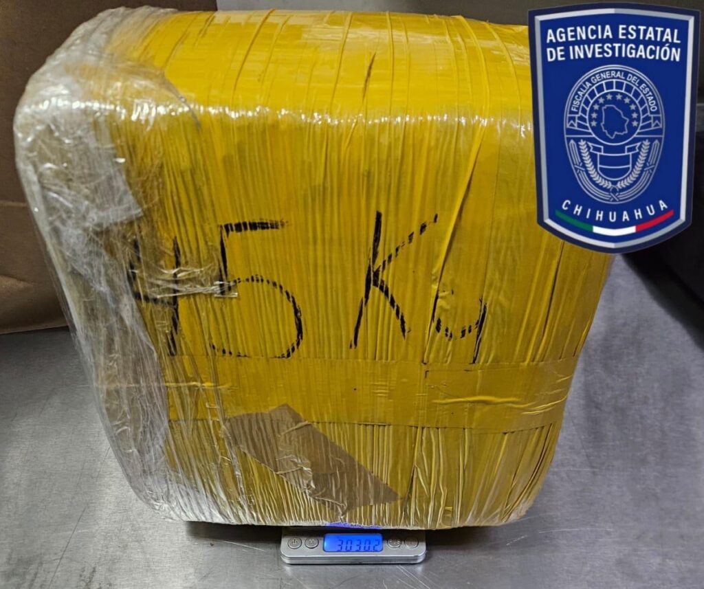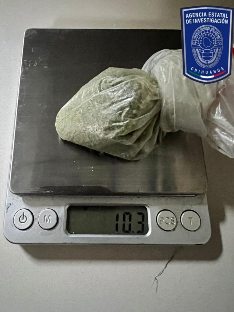 Así como también un paquete de color amarillo en el cual se localizaron 3.03 kilogramos de hierba con las características de la mariguana.