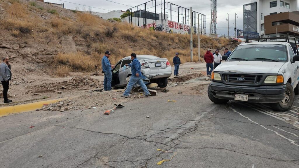 De acuerdo con los primeros informes, un adulto mayor que conducía un automóvil Chevrolet Aveo perdió el control del volante mientras avanzaba por el sector. El vehículo se proyectó contra señalamientos colocados por personal de la Junta Municipal de Agua y Saneamiento, quienes realizaban trabajos para la instalación de una válvula en una zanja.