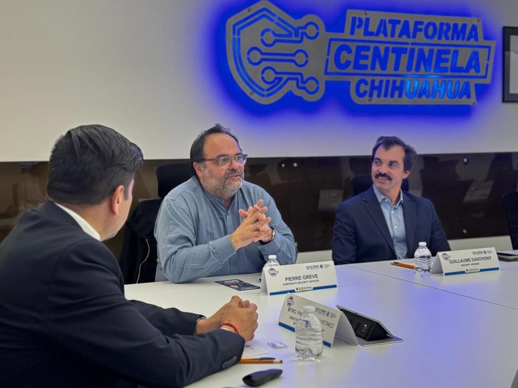 La Secretaría de Seguridad Pública del Estado (SSPE) recibió a representantes del equipo de seguridad de la empresa Safran, quienes realizaron una visita a las instalaciones del C7-iA en la ciudad de Chihuahua para conocer de primera mano el funcionamiento y alcance tecnológico de la Plataforma Centinela, herramienta clave para fortalecer la seguridad en el estado.