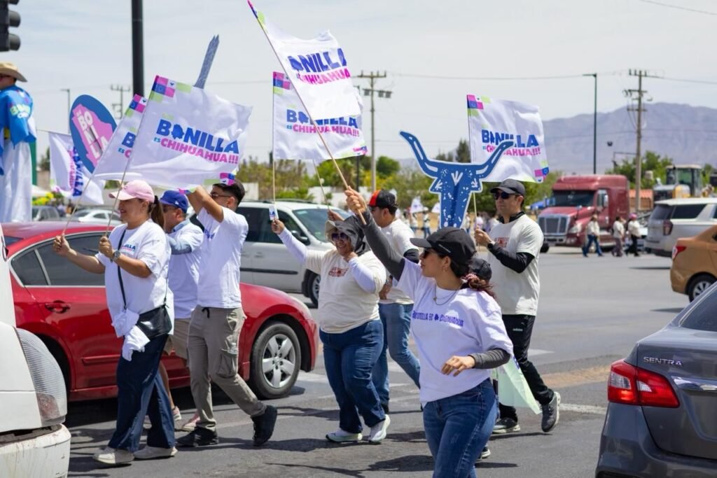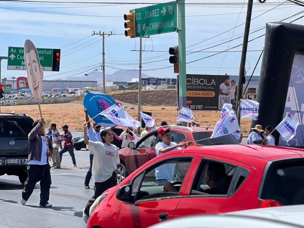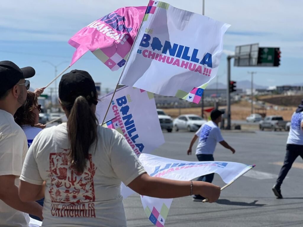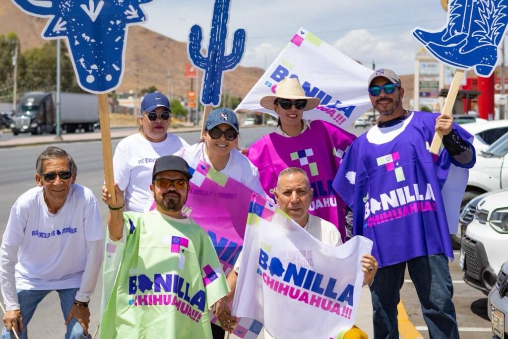 Cientos de personas salieron a los cruceros de la ciudad de Chihuahua para promocionar el sitio web y redes sociales de Qué Bonilla es Chihuahua.