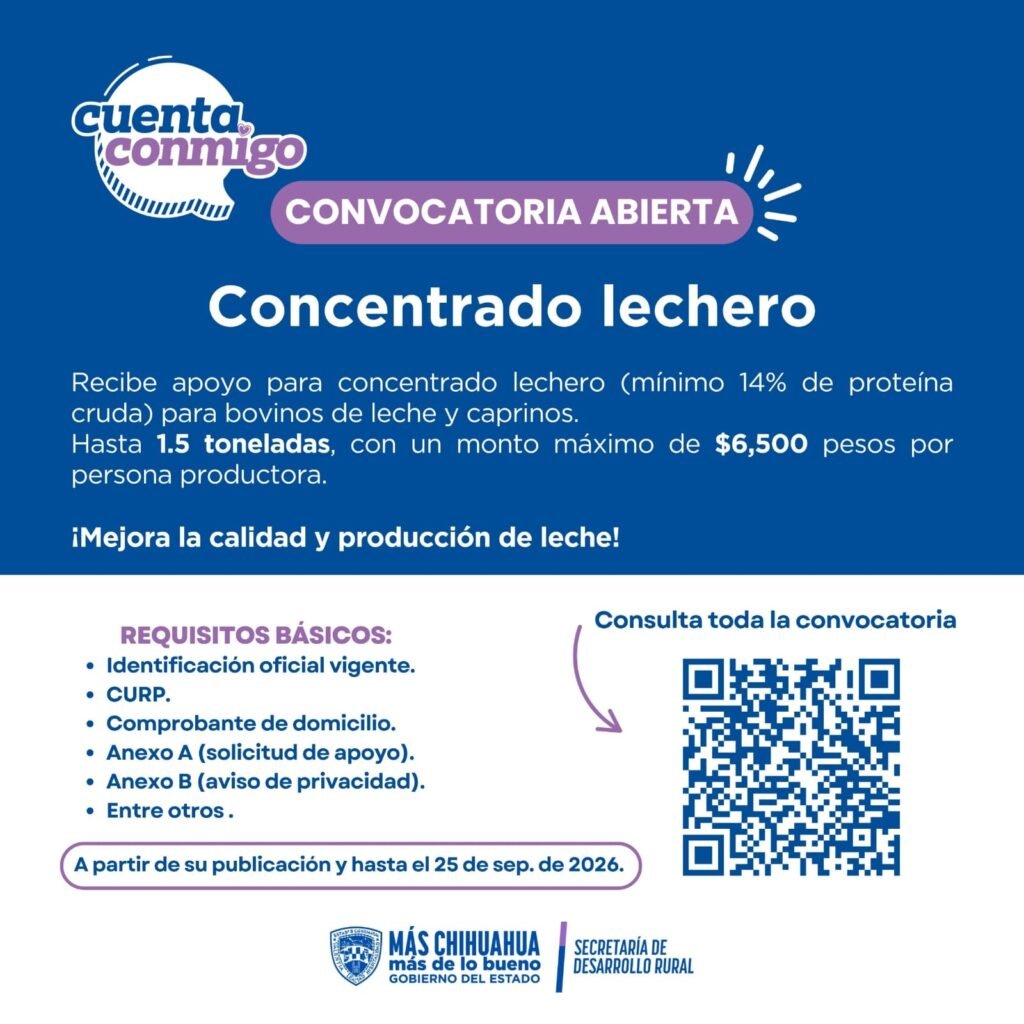 La Secretaría de Desarrollo Rural (SDR) publicó la convocatoria para el apoyo de concentrado lechero, dirigido a personas productoras de bovinos de leche y caprinos en la entidad.