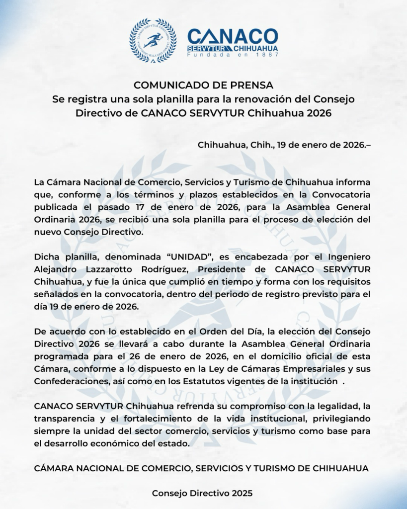 La Cámara Nacional de Comercio (Canaco) realizó un adelanto en la reelección de presidencia, en la cual ganó Alejandro Lazzarotto.
