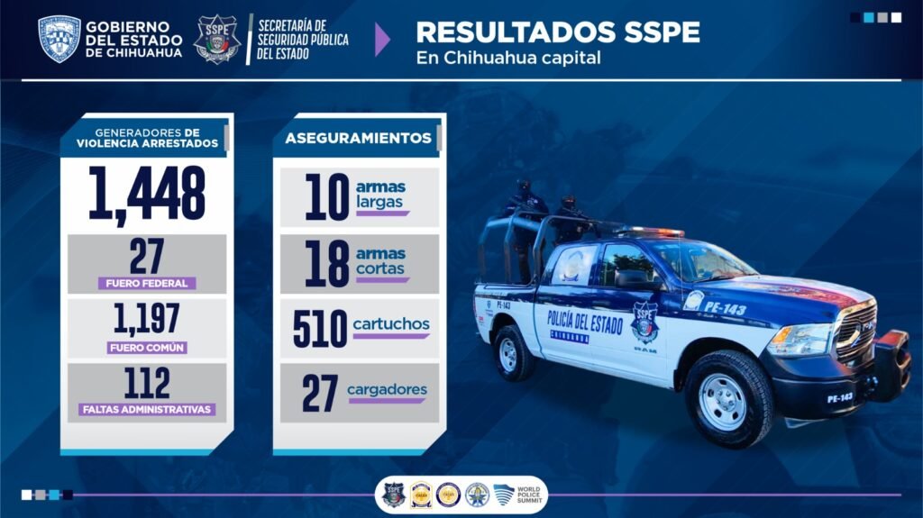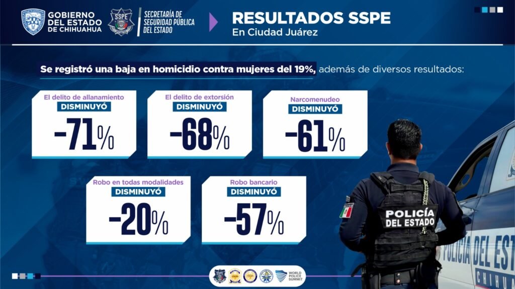 La Secretaría de Seguridad Pública del Estado (SSPE), reitera su compromiso con la ciudadanía para recuperar y mantener la tranquilidad y la paz en Chihuahua, es por ello que durante el 2025, las estrategias implementadas por el titular de la SSPE, permitieron alcanzar una serie de resultados favorables en materia de seguridad.
