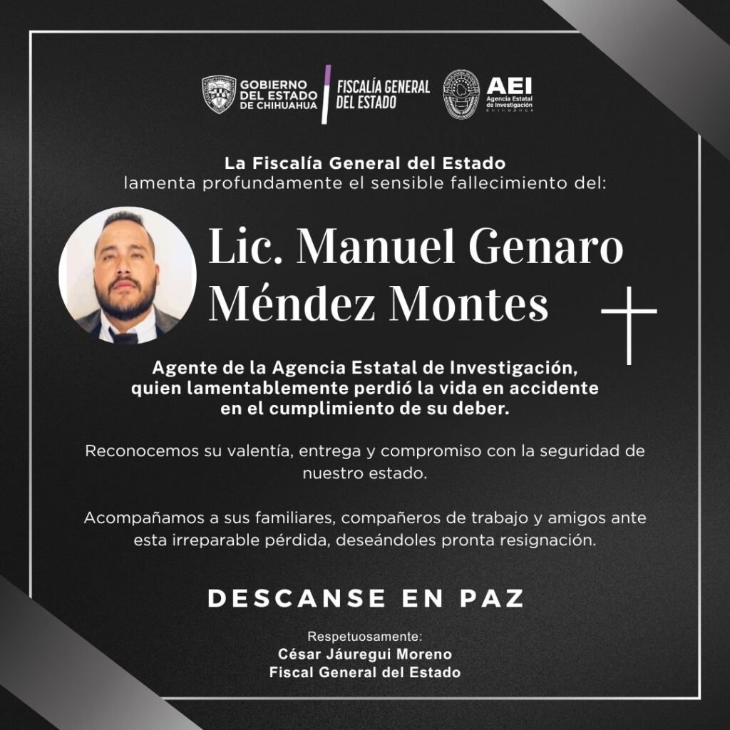 Este lunes a las 6:00pm la Fiscalía General del Estado (FGE) llevará a cabo una guardia de honor para los elementos de la Agencia Estatal de Investigación (AEI) que perdieron la vida durante un accidente vehicular el fin de semana pasado.