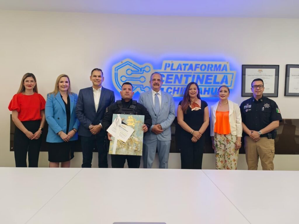 El presidente de la Cámara Nacional de Comercio (CANACO) Chihuahua, Alejandro Lazarotto, hizo entrega de un reconocimiento al elemento de la fuerza especial SWAT de la Secretaría de Seguridad Pública del Estado (SSPE), Fernando López Minjarez, por sus acciones destacadas que le valieron la distinción como Policía del Año 2025, reconocimiento previamente otorgado por el secretario Gilberto Loya.