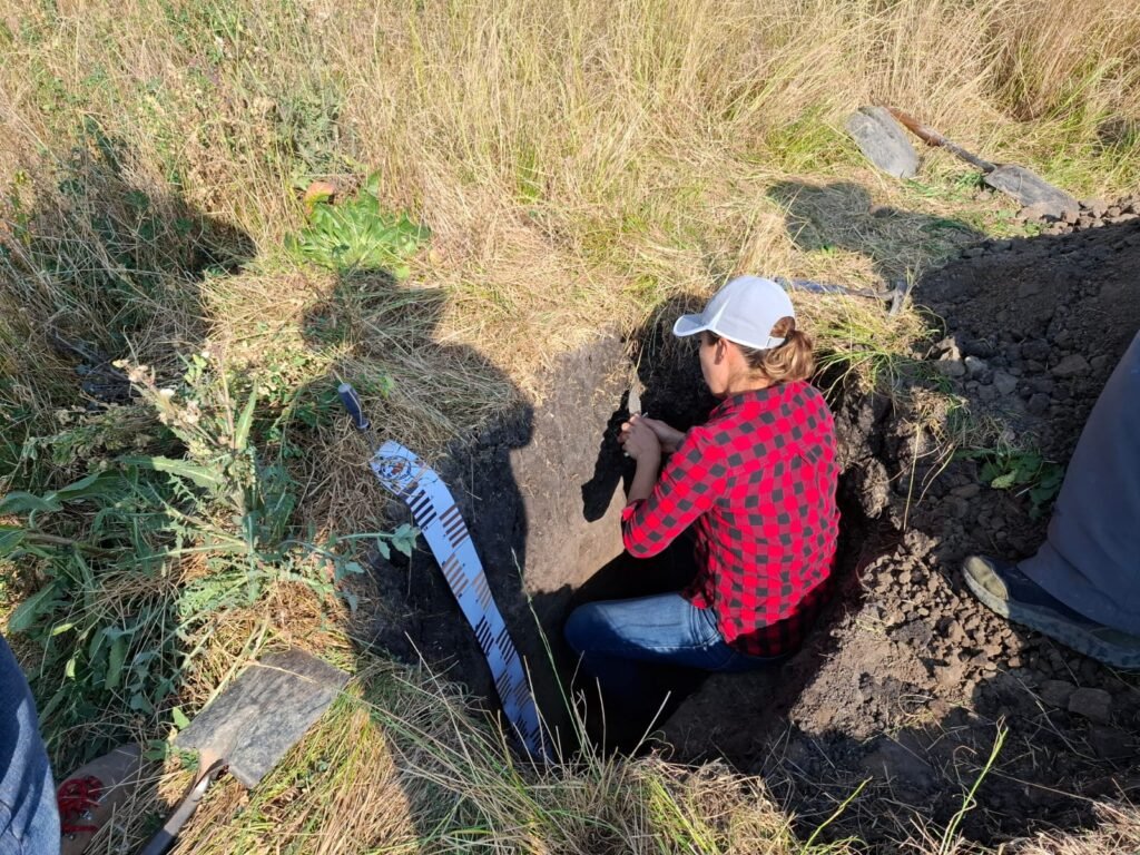 Durante la actividad académica se desarrollaron ejercicios prácticos de campo, entre ellos la excavación de un pozo agrológico, donde se llevaron a cabo actividades como la identificación de horizontes edáficos, la evaluación de la estructura del suelo, la presencia de carbonatos y otros parámetros técnicos que permiten su descripción y clasificación.