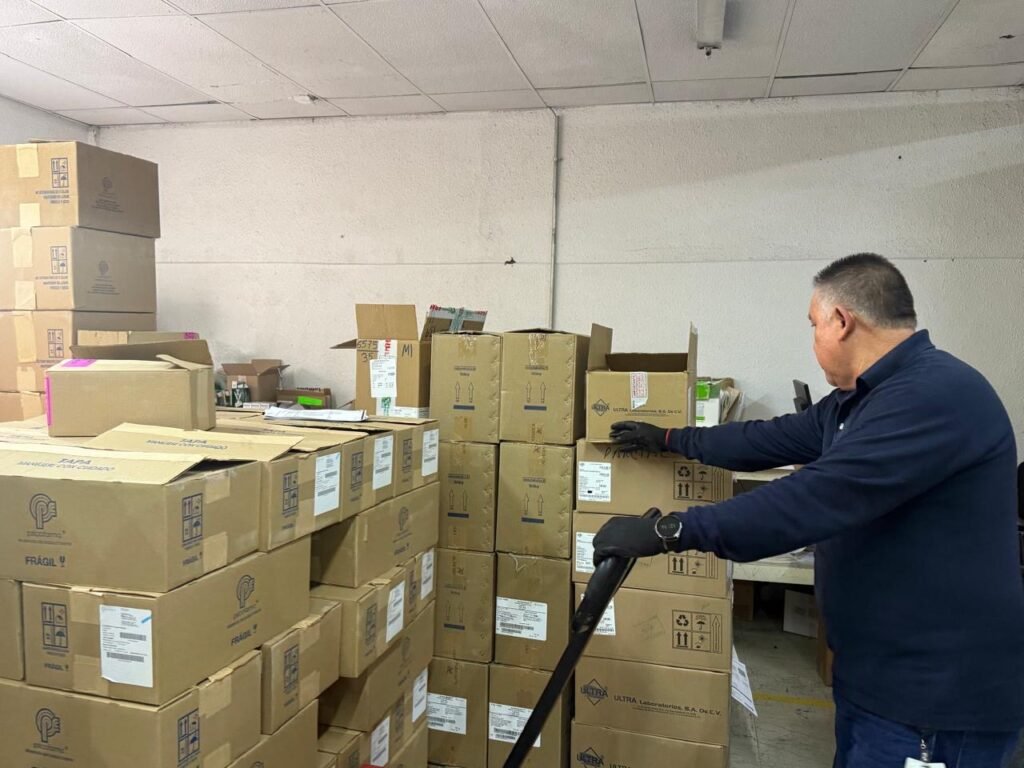 Estos datos se presentaron durante la visita del director general de PCE, Heriberto Miranda Pérez, al almacén central de medicamentos, donde sostuvo una reunión de trabajo con las áreas de abastecimiento, farmacia y distribución para definir la programación de entregas a las delegaciones.