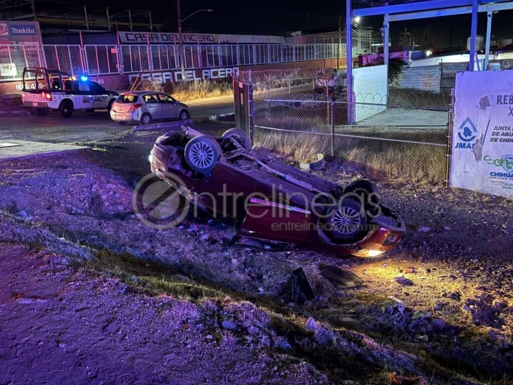 Salida de camino y volcadura deja dos lesionados al sur de la ciudad