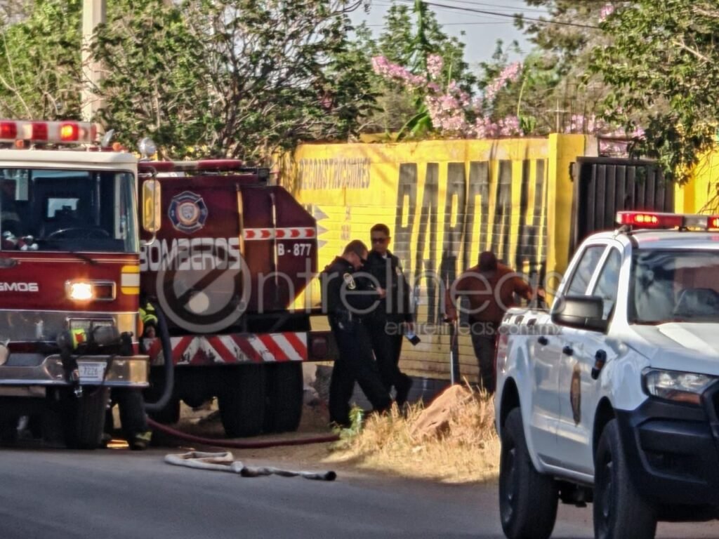 Un tráiler fue consumido en gran parte por un incendio registrado en un taller de reparación ubicado en la calle Sierra del Cuervo, casi en el cruce con el periférico Vicente Lombardo Toledano.