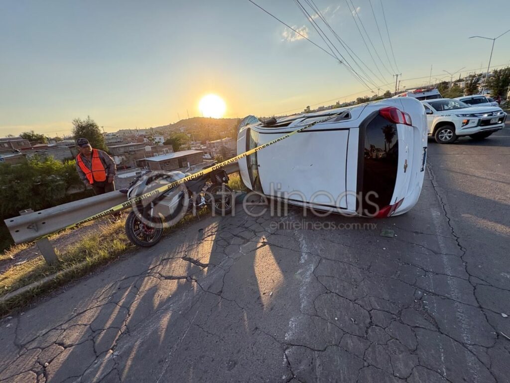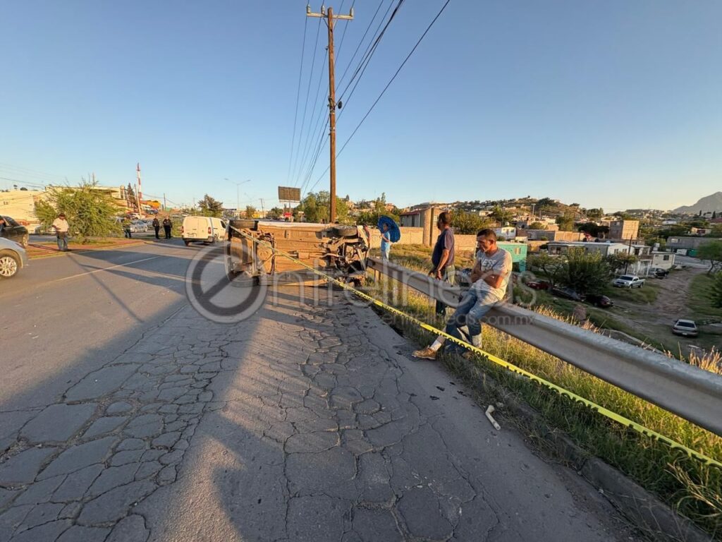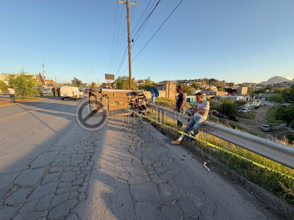 La tarde de este martes se registró un aparatoso accidente sobre la avenida Pacheco, a la altura de la calle Pablo Meoqui, que derivó en una volcadura y posteriormente en una carambola, dejando como saldo dos personas lesionadas y severo congestionamiento vial en ambos sentidos de la circulación.