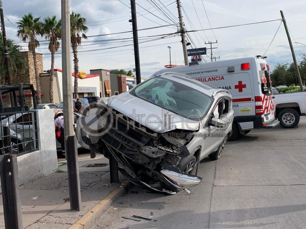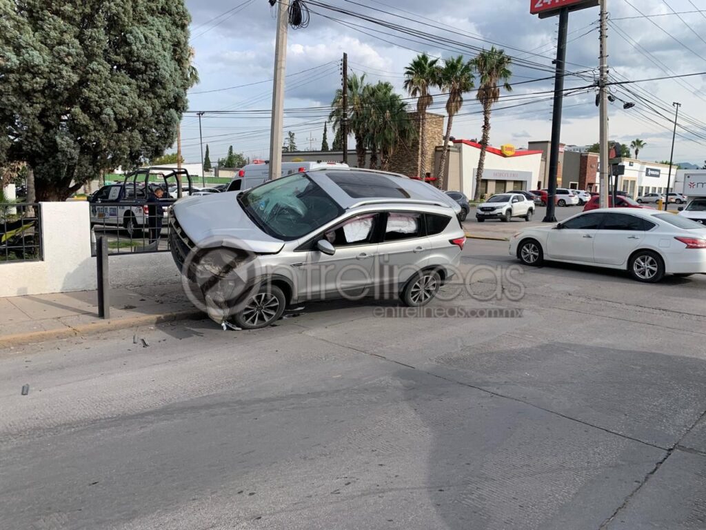 La mañana de este miércoles se registró un fuerte accidente vial en el cruce de la avenida Ortiz Mena y Antonio de Montes, que dejó como saldo una mujer adulta mayor lesionada y daños materiales de consideración.