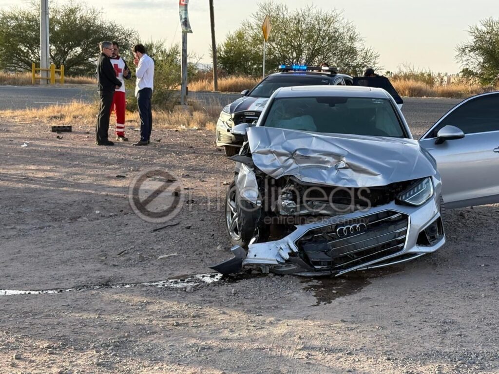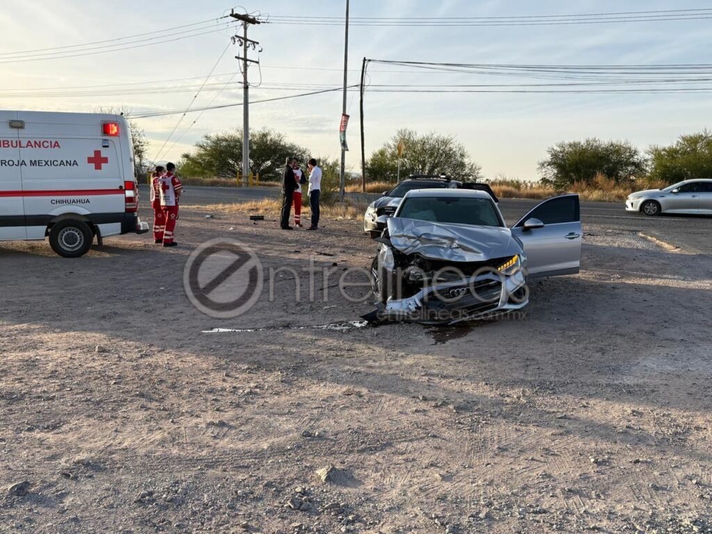 El accidente ocurrió cuando un automóvil Audi blanco circulaba sobre Teófilo Borunda en sentido de este a oeste, momento en que fue impactado por un Chevrolet Camaro negro que transitaba por la avenida Hacienda Real.