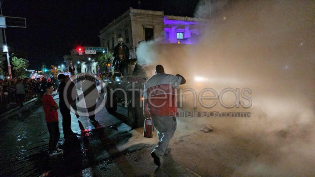 El tradicional desfile de catrinas resultó con un pequeño incidente, esto debido a que un carro del contingente del festival comenzó a incendiarse, dando paso a un momento de pánico entre los asistentes.