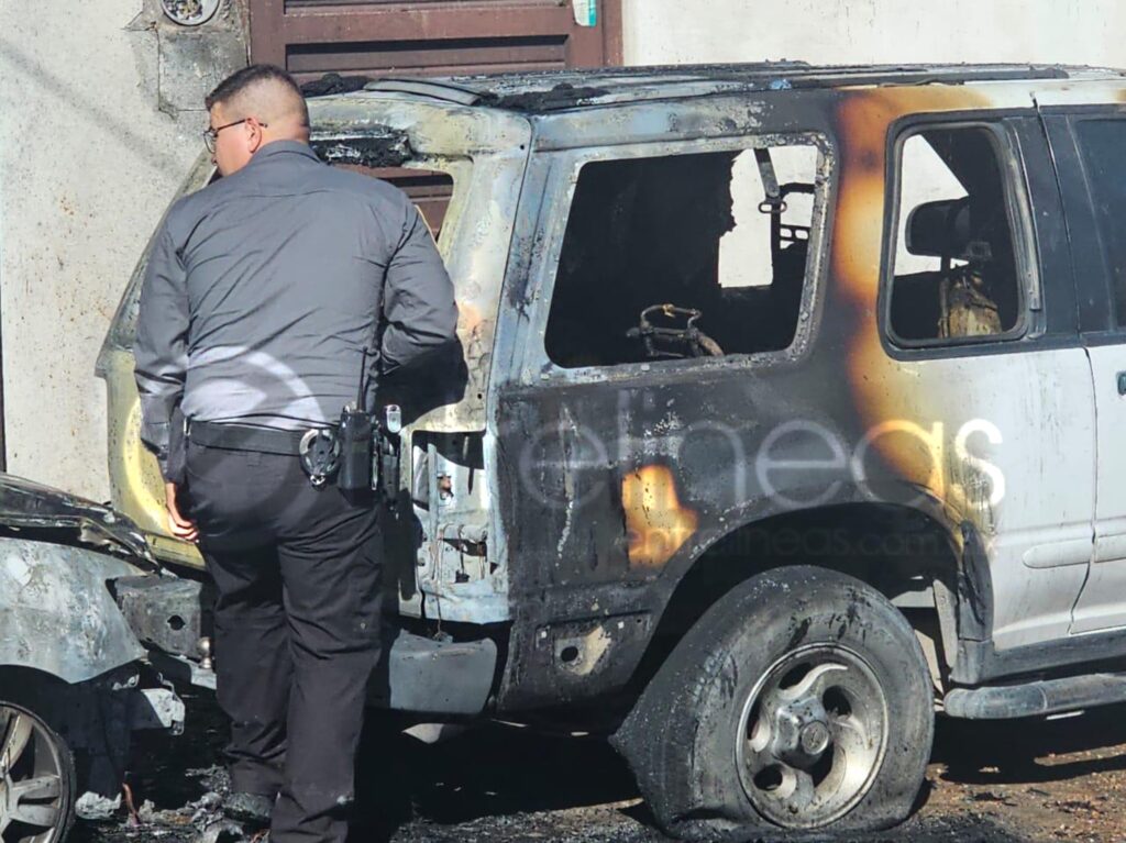 Al lugar arribó la Policía Municipal, quienes tuvieron a la vista dos vehículos completamente incendiándose un Chevrolet Sonic y una camioneta Ford Explorer ambos de color blanco completamente en llamas por lo que solicitaron el apoyo de bomberos.