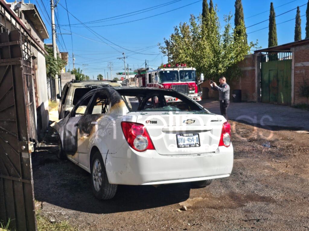 Arden dos vehículos al exterior de domicilio en la colonia 3 de mayo