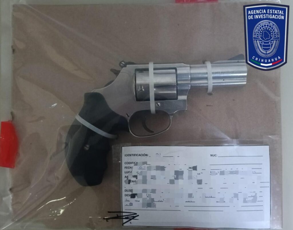 También, un arma de fuego tipo revolver, color cromado y con una empuñadura de color negro que tenía la leyenda “Smith & Wesson .357 Magnum”.