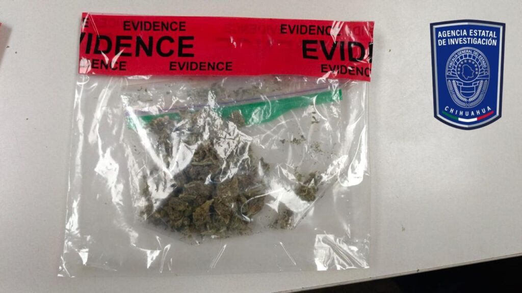 - Una bolsa transparente tipo ziploc, que contenía una hierba verde, seca y olorosa, con las características propias de la marihuana, con un peso de 63 gramos.