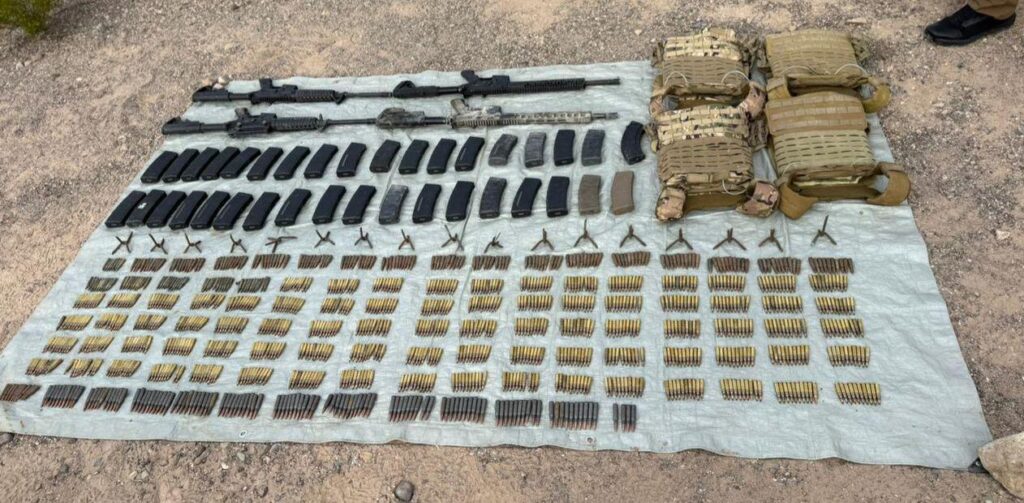 El material asegurado incluye nueve armas largas, 36 cargadores, 1,114 cartuchos útiles de diversos calibres, 4 chalecos tácticos con placa balística y 17 poncha llantas, los cuales fueron trasladados a la Fiscalía General de la República en la ciudad de Chihuahua para su puesta a disposición, conforme a los protocolos establecidos.