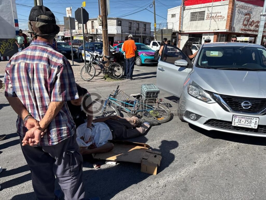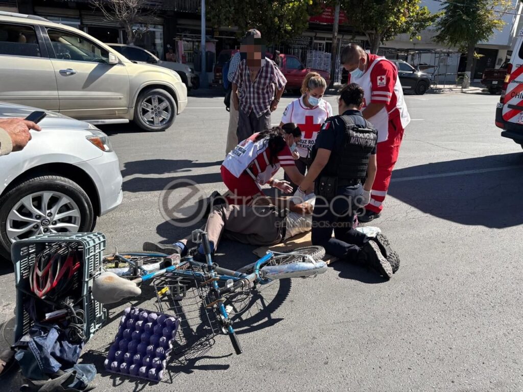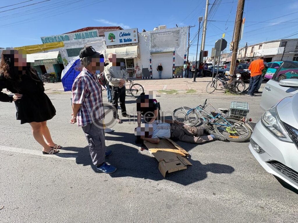 Los hechos ocurrieron cuando la conductora de un vehículo Nissan Sentra de color gris circulaba por la calle 25 de norte sur y al dar vuelta a su derecha sobre la avenida Juárez impacta al adulto mayor.