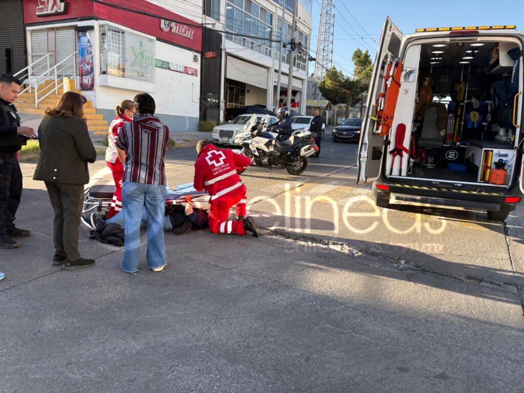 Una joven mujer de aproximadamente 25 años de edad fue impactada por un vehículo Chevrolet Aveo cuando cruzaba un paso peatonal ubicado en el cruce de la avenida Juan Escutia y bulevar el Saucito.