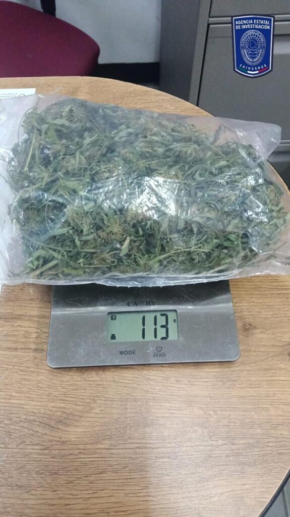 ✓ Una bolsa de plástico con una hierba verde, seca y olorosa en greña con las características propias de la marihuana que dio un peso de 113 gramos.