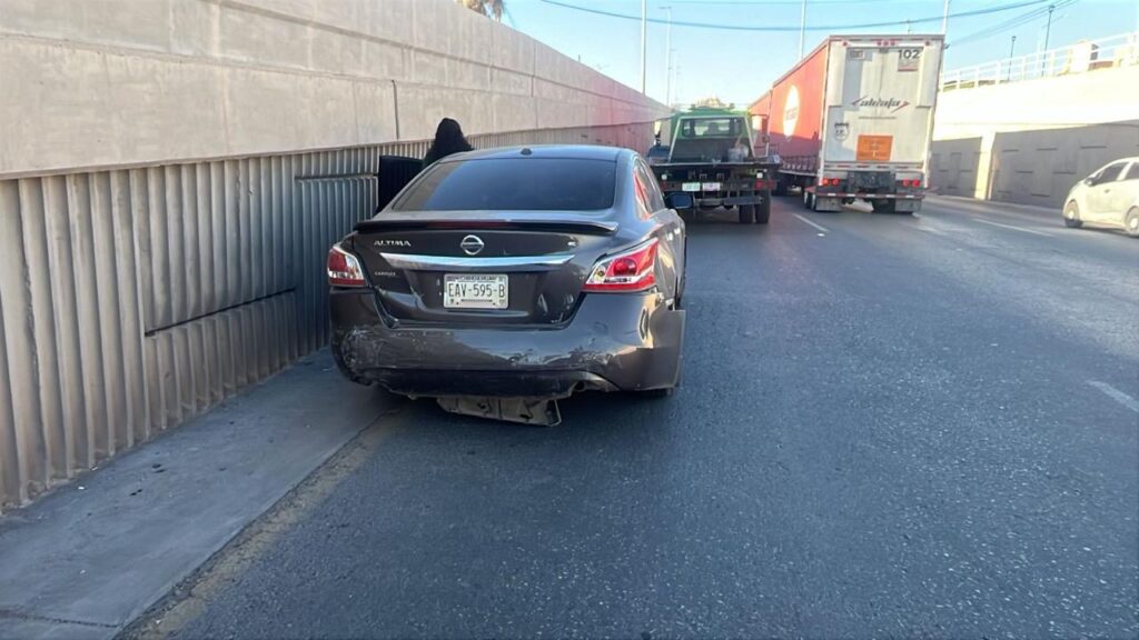 El punto exacto fue cerca de la gasolinera Oxxo y el supermercado La Leona. Fue un Datsun verde que no guardó distancia y chocó contra un Nissan Altima gris. El impacto hizo que un Hyundai Elantra negro golpeara al Altima. Segundos después, un Nissan Platina arena impactó al Elantra.