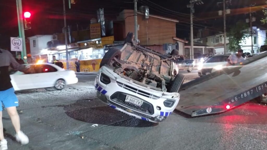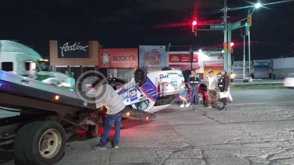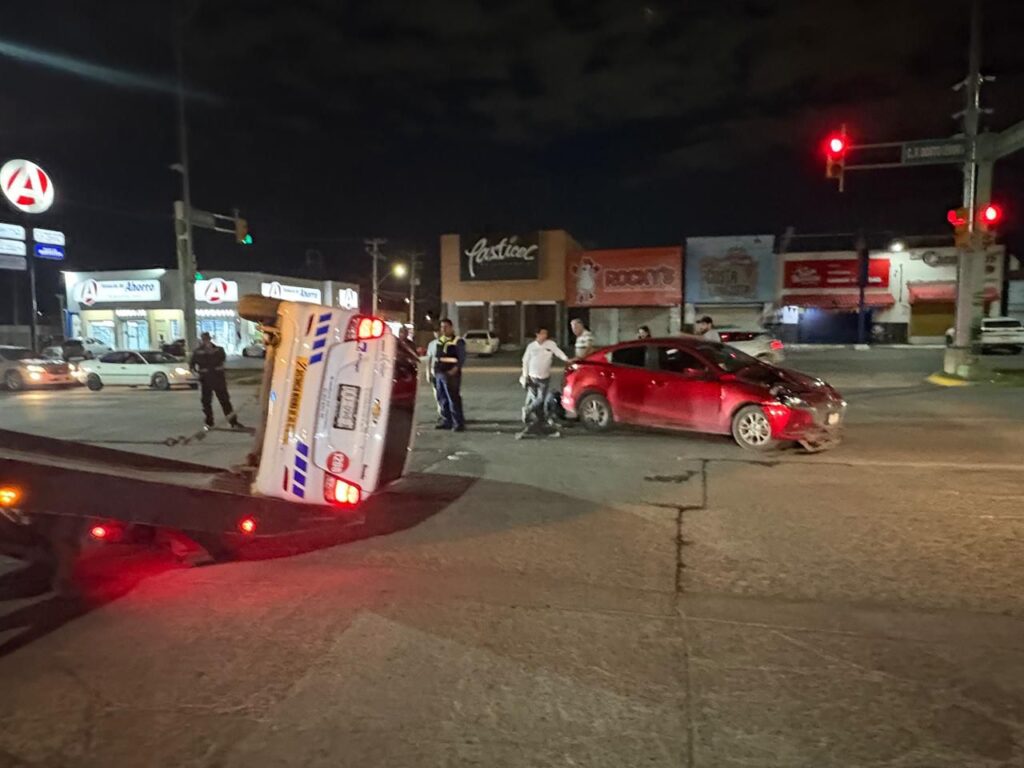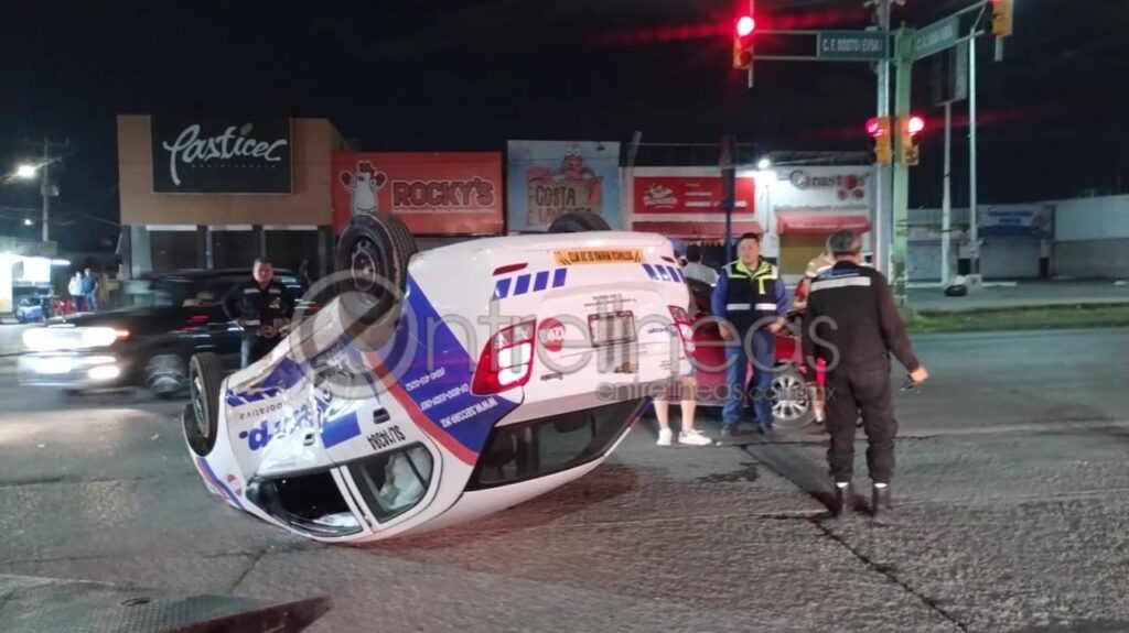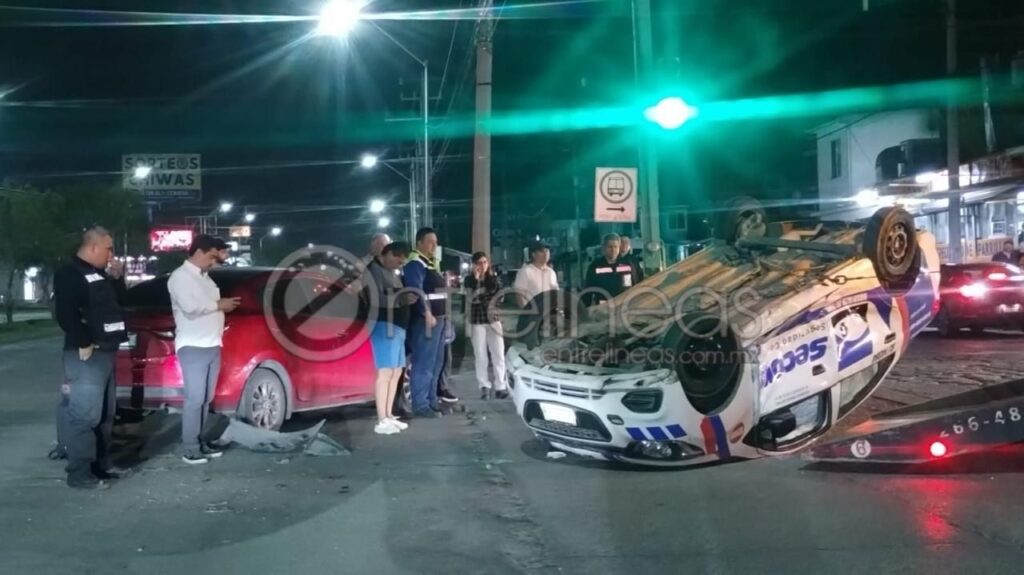 De acuerdo con el reporte, el accidente ocurrió cuando un vehículo Mazda, color guinda, circulaba de oriente a poniente por Dostoyevski, mientras que un Chevrolet Beat blanco, perteneciente a una empresa de seguridad, lo hacía en sentido contrario. Al intentar girar a la izquierda hacia Sosa Vera, el Beat le cortó el paso al Mazda y terminó volcado tras el impacto.
