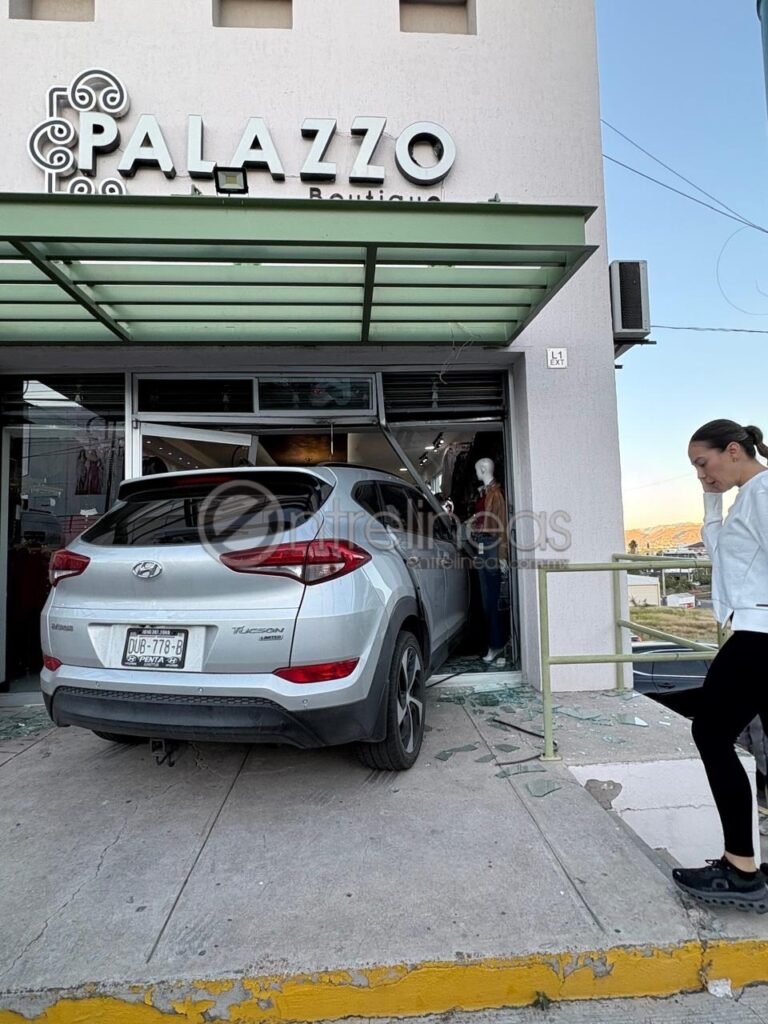 El hecho ocurrió en el cruce de las calles Bahía de San Quintín y Universidad de Palermo, cuando la conductora de una camioneta Hyundai Tucson color gris perdió el control del vehículo y se proyectó contra la fachada de la boutique “Palazzo”.