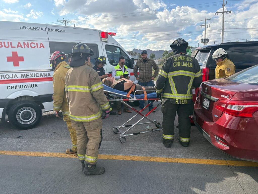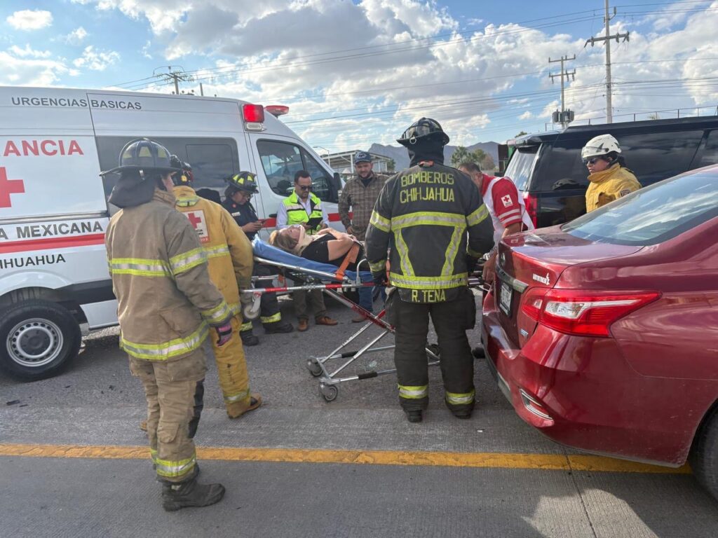 Tras el impacto, la mujer quedó atrapada y conductor fractura de cadera arriban bomberos, rescate urbano y paramédicos de cruz roja. Asimismo, policía vial toma reporte del accidente.