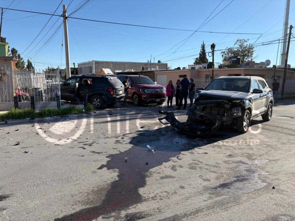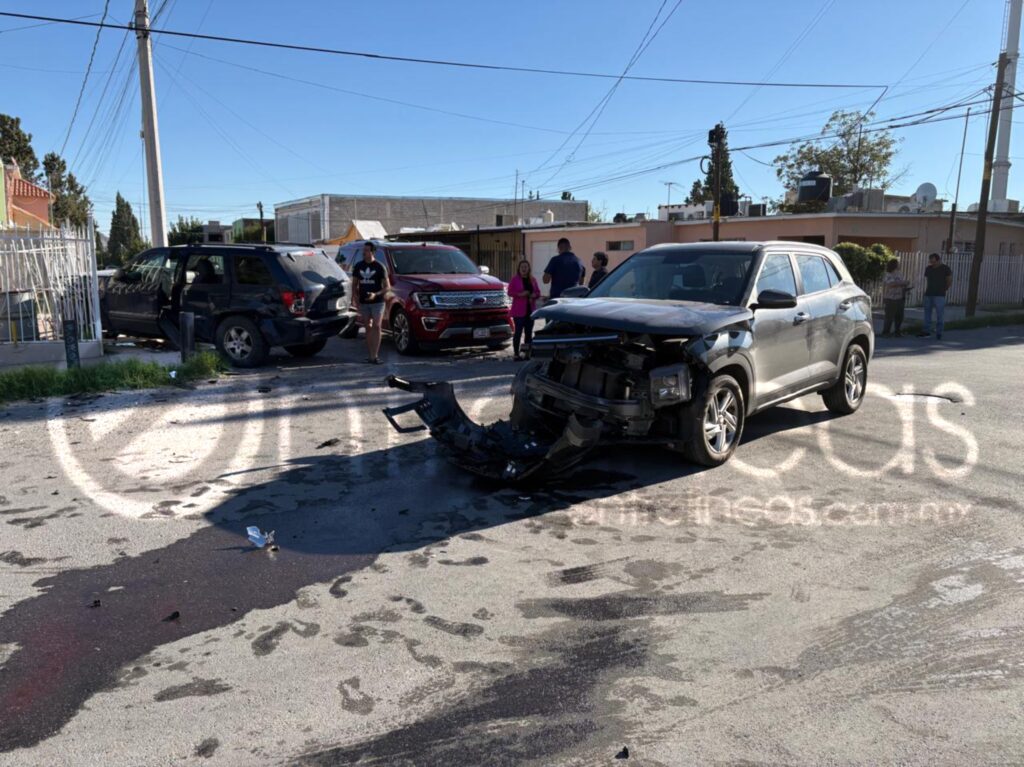 Un choque se registró sobre las calles urquidi y 50 en la colonia Rosario entre los conductores de una camioneta jeep cherokee de azul que circula calles urquidi 50 de sur a norte, al llegar Urquidi; omite alto lo impacta una hyundai.