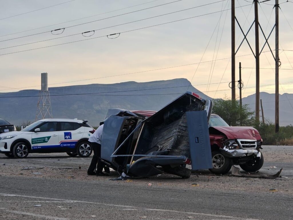 Un aparatoso accidente se registró durante la mañana de este viernes sobre la carretera Aldama-Chihuahua, a la altura del kilómetro 15 más 500 metros antes de llegar al libramiento oriente, se reportó un fuerte accidente, ya que el conductor de una Chevrolet S10 intentó ingresar a una entrada del fraccionamiento Los Leones.