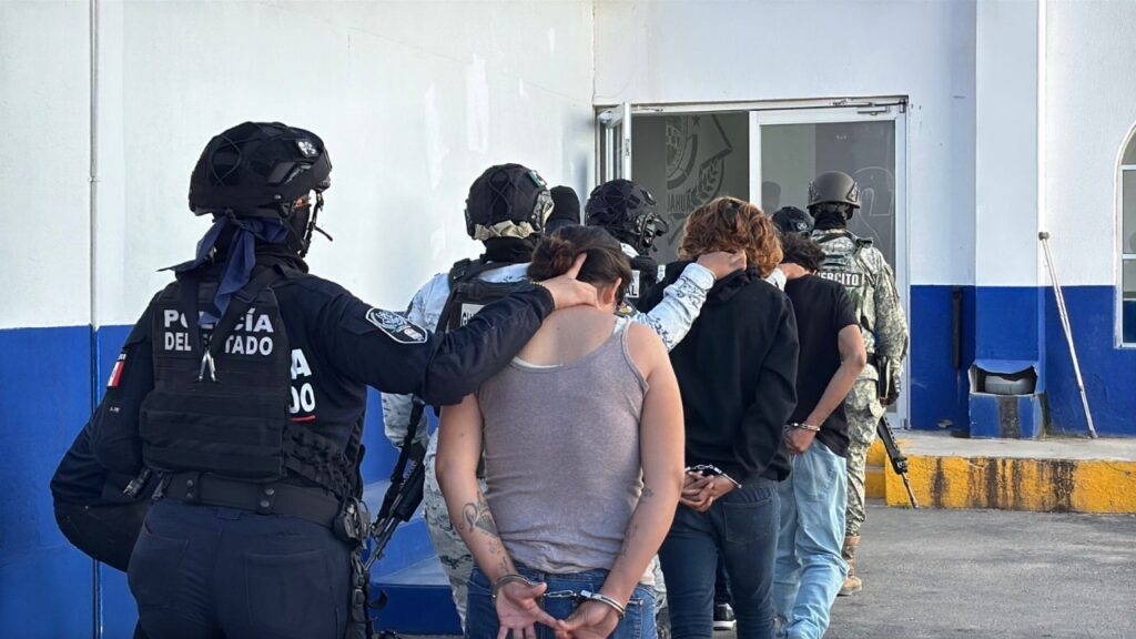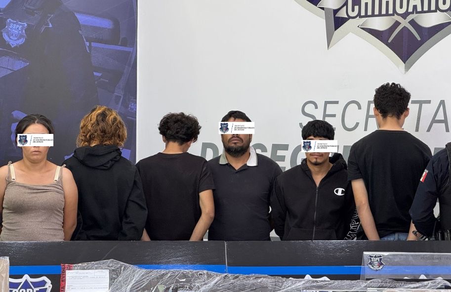 Durante la intervención, los agentes aseguraron a cuatro hombres y dos mujeres, identificados como Jorge G. R. alias “El Lobo”, de 38 años; Luis Fernando V. M. alias “El Ferias”, de 16 años; Sergio Alberto O. C. alias “El Pollo”, de 22 años; David P. A. alias “El Güero”, de 16 años; Jocelyn L. M., de 17 años; y Ana F. T., de 23 años.