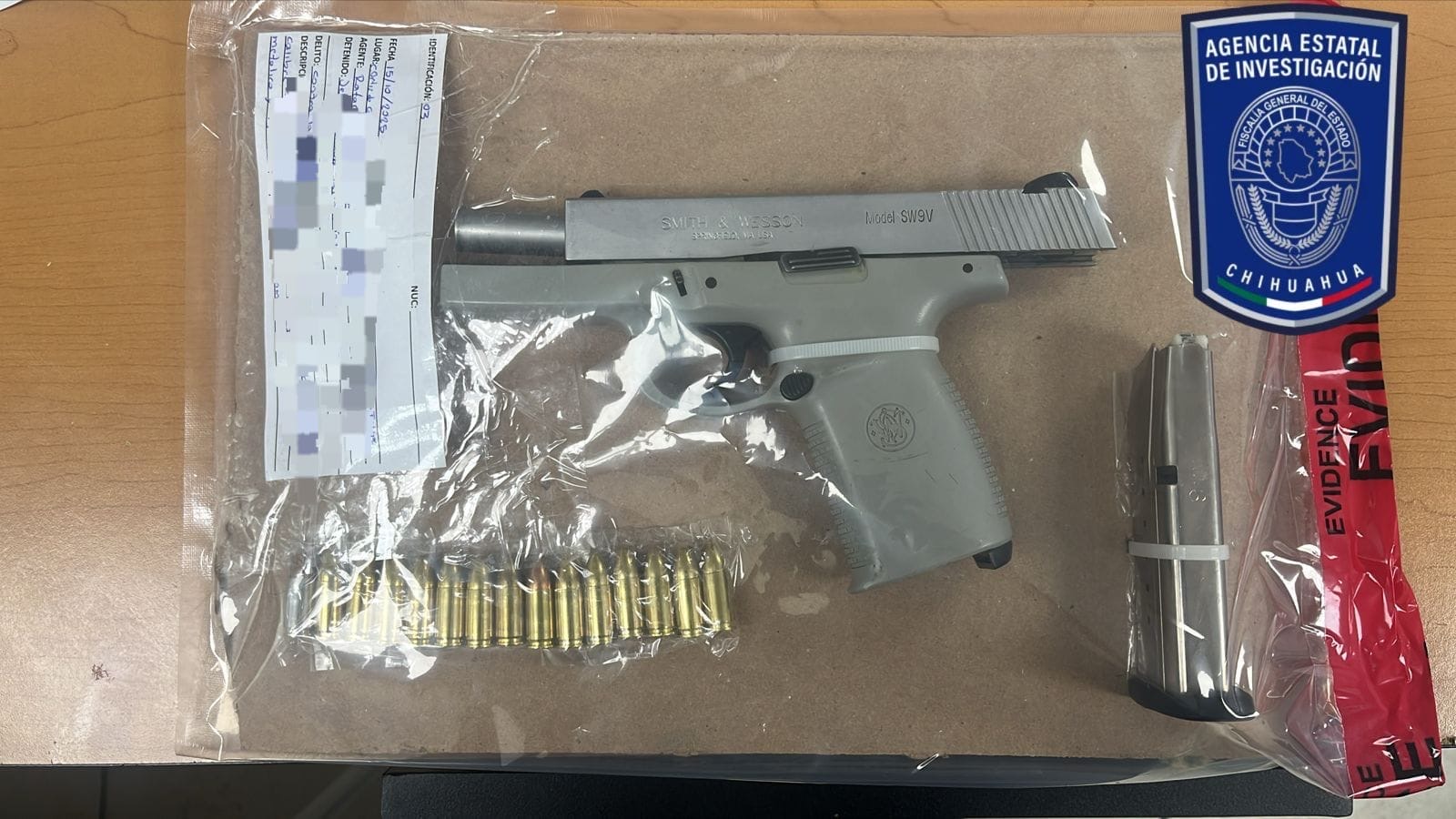 • Un arma de fuego tipo pistola, marca Smith y Wesson calibre .9mm, con su cargador metálico, y 15 cartuchos calibre .9mm.