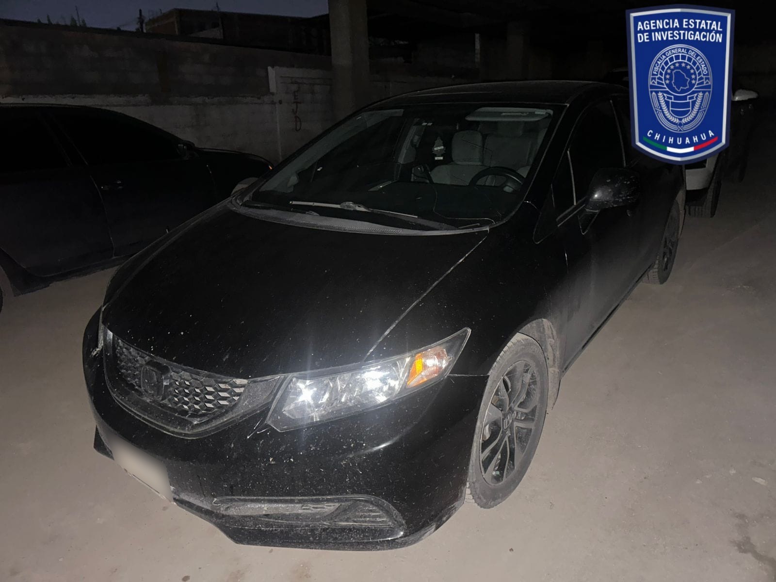 • Un vehículo de la marca Honda, línea Civic de color negro, modelo 2013, que no cuenta con reporte de robo.